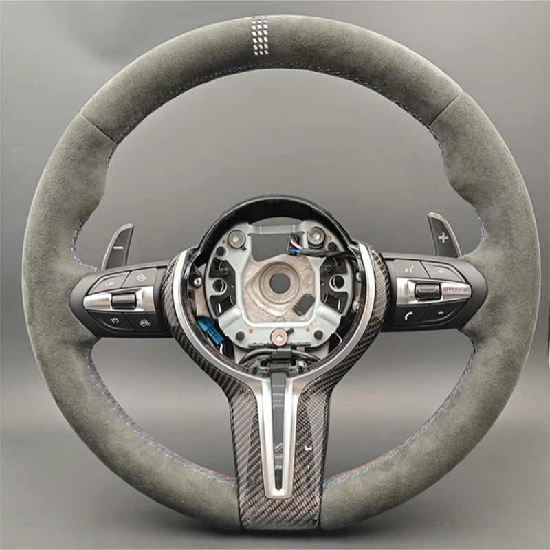 Volante in Pelle Scamosciata Stile CS con Finiture in Carbonio per BMW F01F07 F10 F20 F22 F30 F31 F32 F35 M5 F87 M3 F80 M4 F82 F90 X5 F15 F16