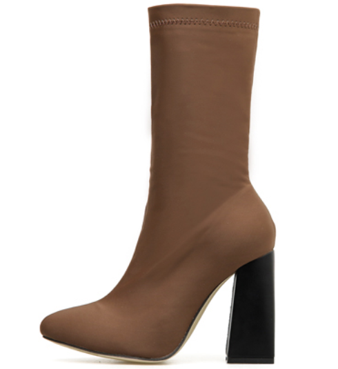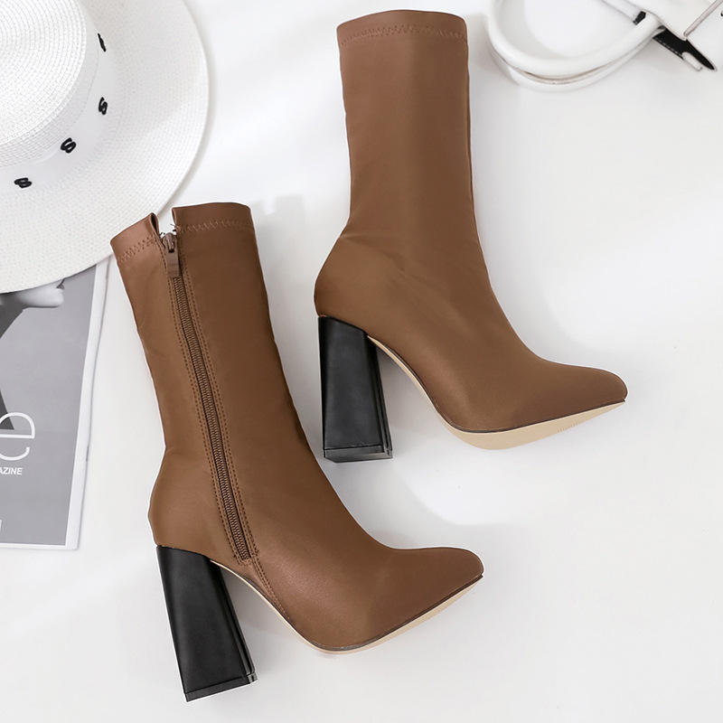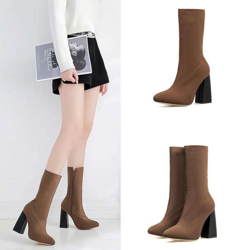 CSB21 Nuovo inverno cuciture in pelle scamosciata a punta con tacco alto discoteca stivaletti alla caviglia