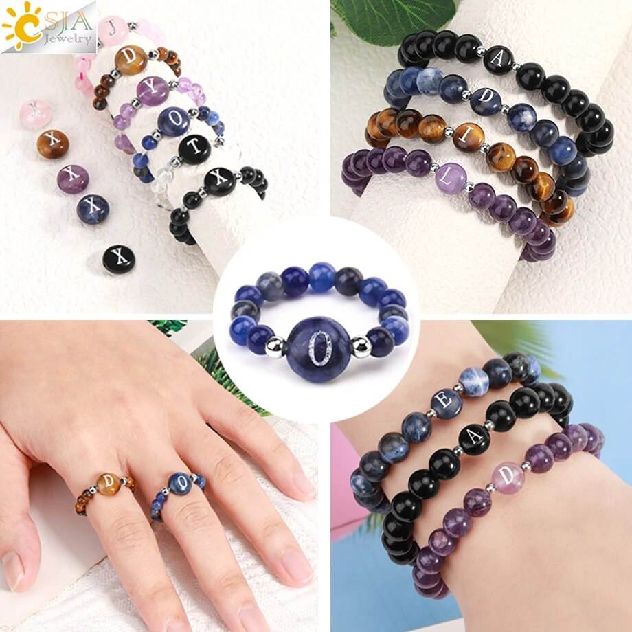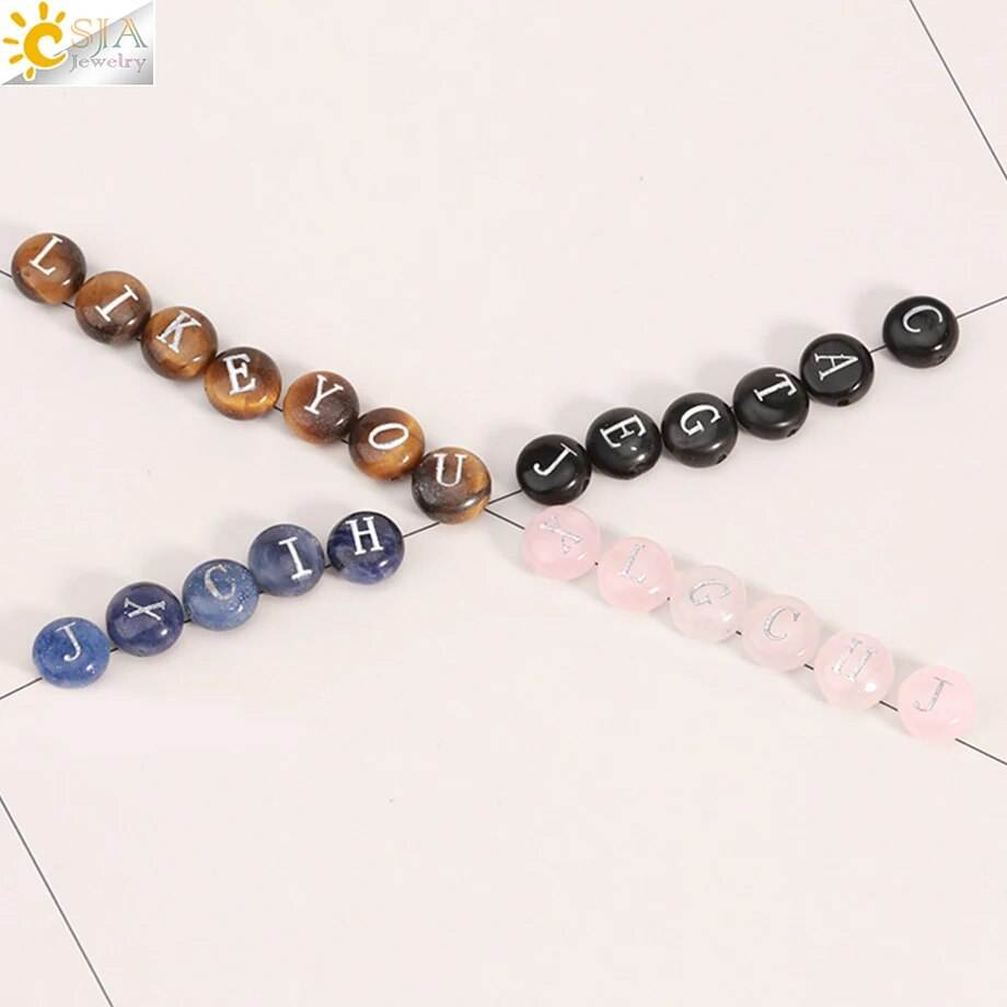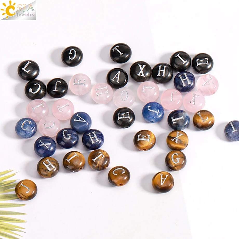 CSJA Jewelry Accessories Gemstone Loose Beads Charm Natural Stone Crystal A-Z 26 Initial Letter Bead for Bracelet Ring Making
