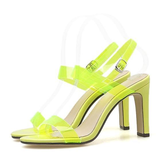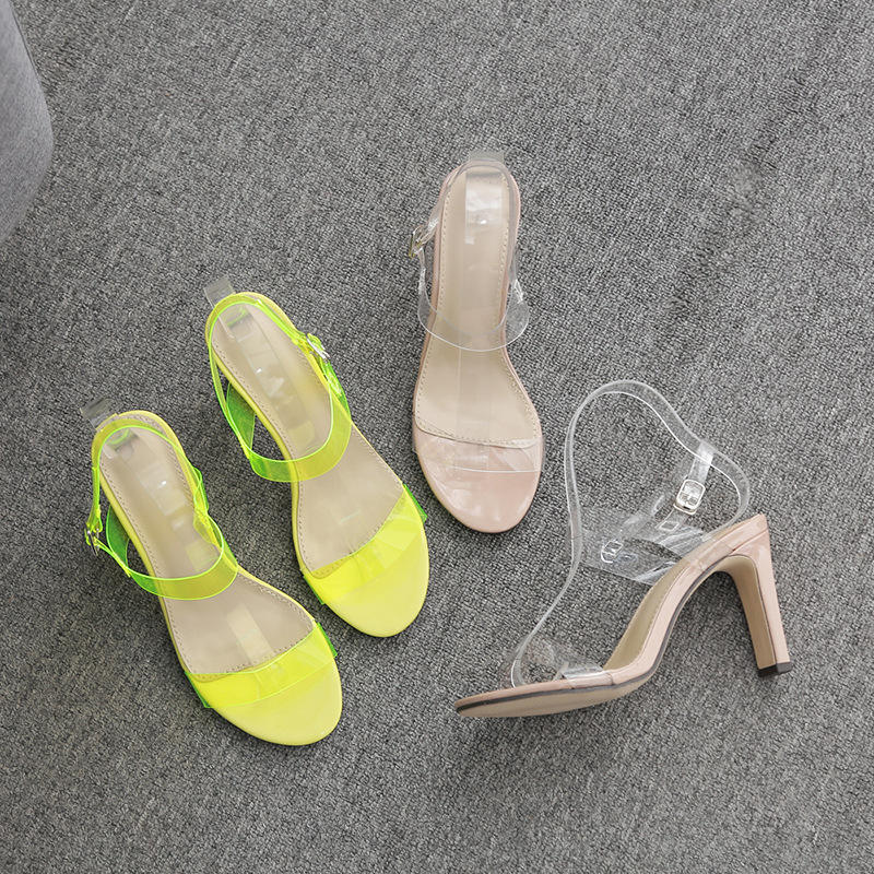 CSS495 2019 New Fashion Yellow PVC Clear Straps Square Heels Sandals for Women Summer Women's Shoes