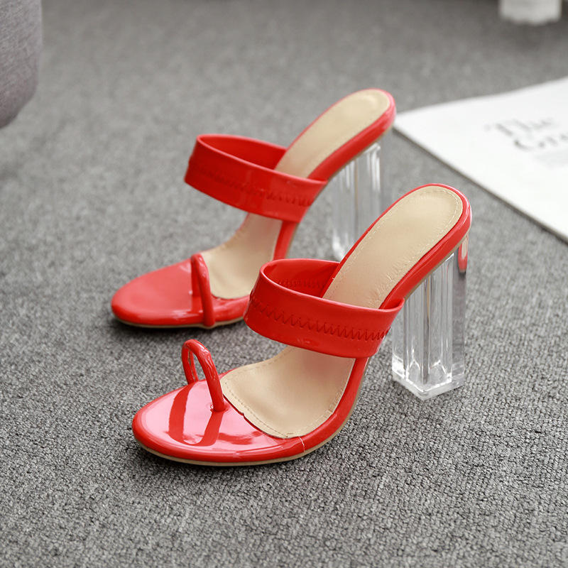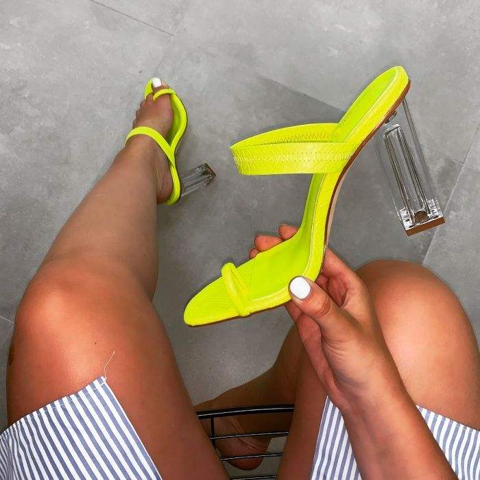 CSS59 da donna con tacco estivo giallo rosso punta Mules con chiusura superiore Slip-On in raso con tacco trasparente