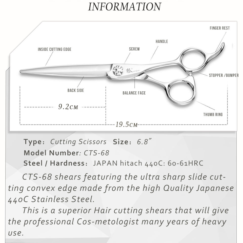 CTS-68 Forbici da Barbiere in Acciaio Giapponese Hitachi 440c da 6,8 Pollici, Forbici per Taglio Capelli, Forbici per Bellezza e Parrucchiere