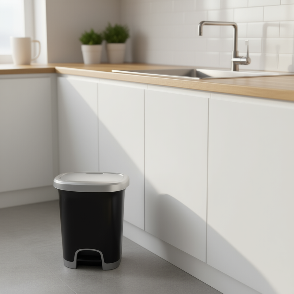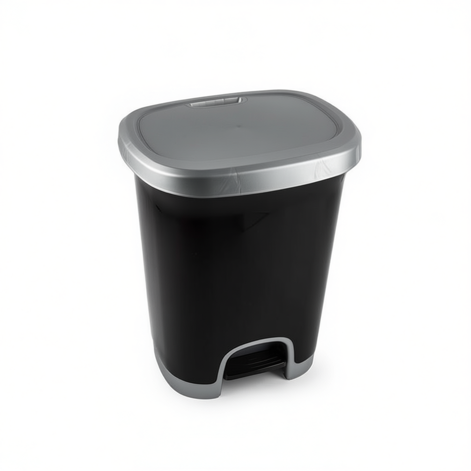 CUBO PEDAL 27L Cestino per Rifiuti Nero con Coperchio Argento