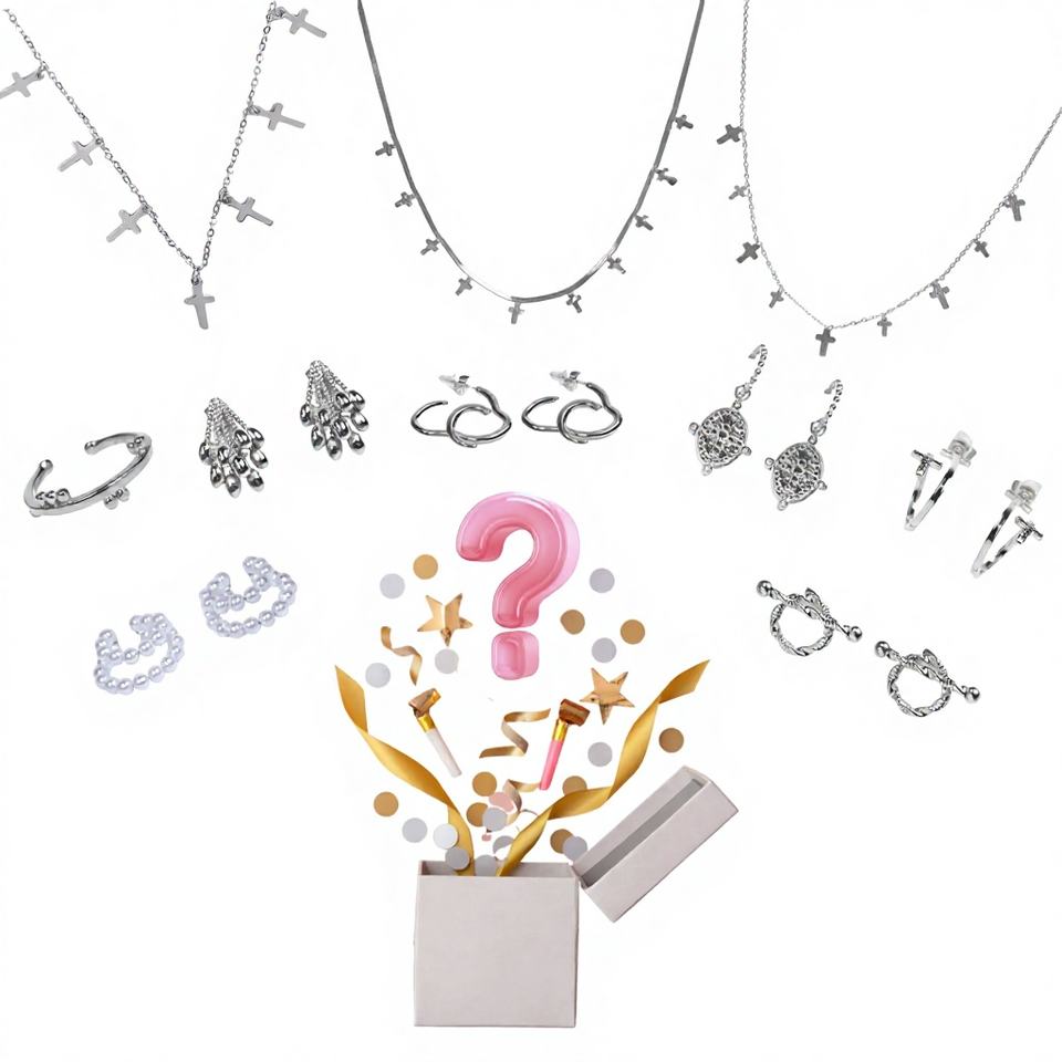 CUCOCUCA Surprise Stainless Steel Jewelry Mystery Box Waterproof Hypoallergenic Trendy Gift Set Necklaces Earrings Rings