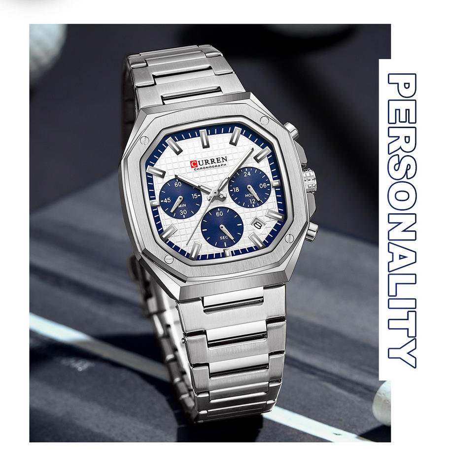 CURREN 8459 Orologio da Uomo di Alta Gamma con Design Unico, Quadrante Vintage Quadrato, Bracciale in Acciaio Inossidabile, Nuovo Modello Casual al Quarzo con Cronografo