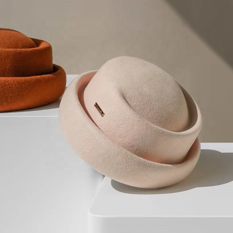 LOGO personalizzato di lusso all'ingrosso promozionale a buon mercato soffice classico Western da donna 100% ciotola di lana Trilby Fedora cappello in feltro per le donne