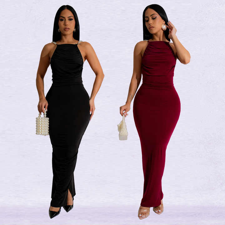 CX7133 Vestido perle uniche senza schienale Bodycon abito donna plissettato Maxi abito da sera per eventi abbigliamento 2025 donna