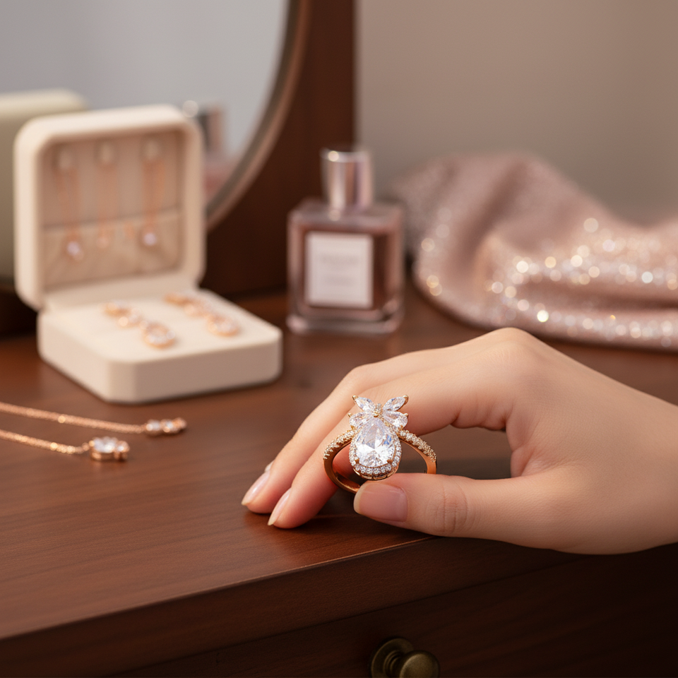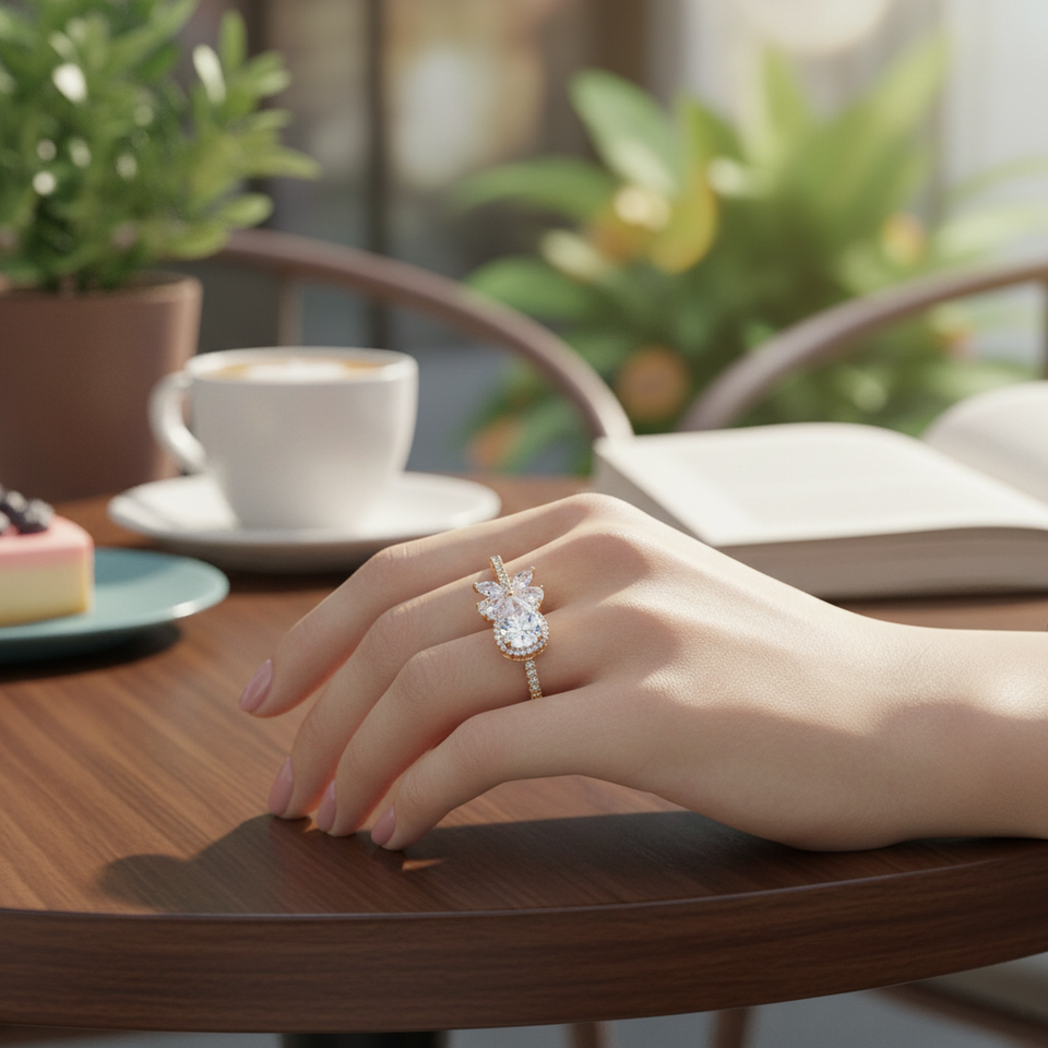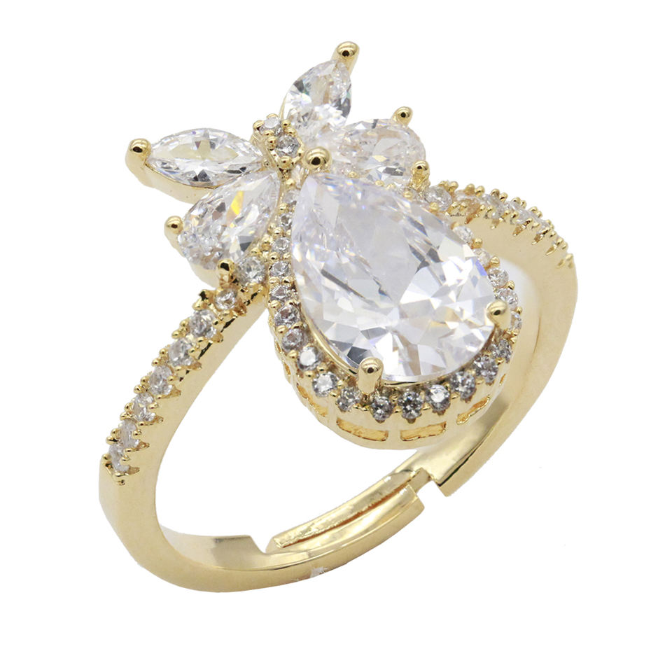 CZ Adjustable Rose Gold Plated Resin Rings Fashionable Trendy Opening Inlay Ring Number Shape