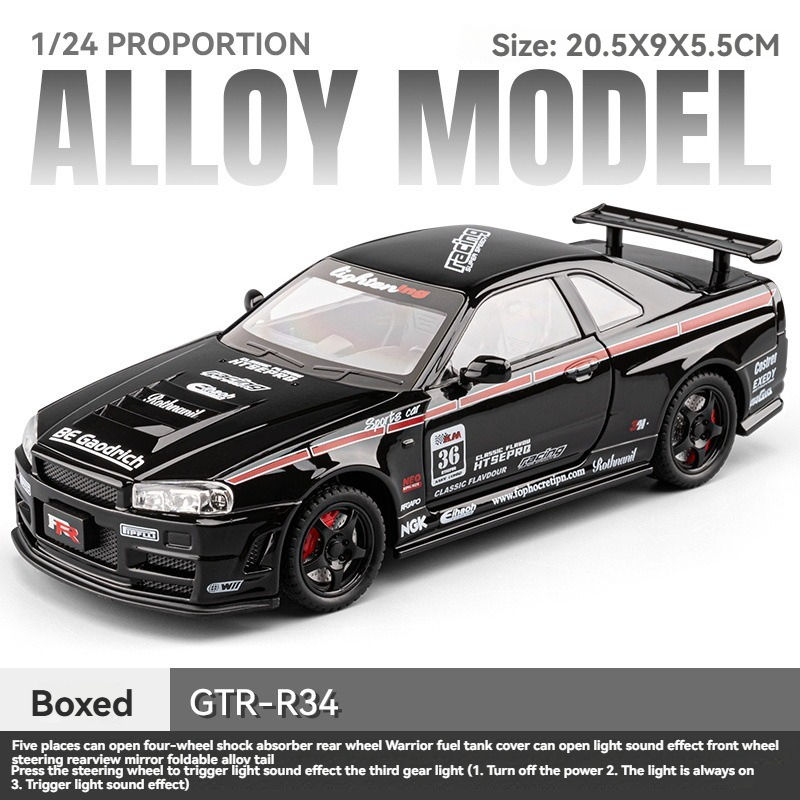 Modellini Auto in Metallo CZ 1:24, Modello Nissan GTR R34 in Lega, Fast and Furious, Porte Apribili, da Collezione, Auto Giocattolo in Metallo
