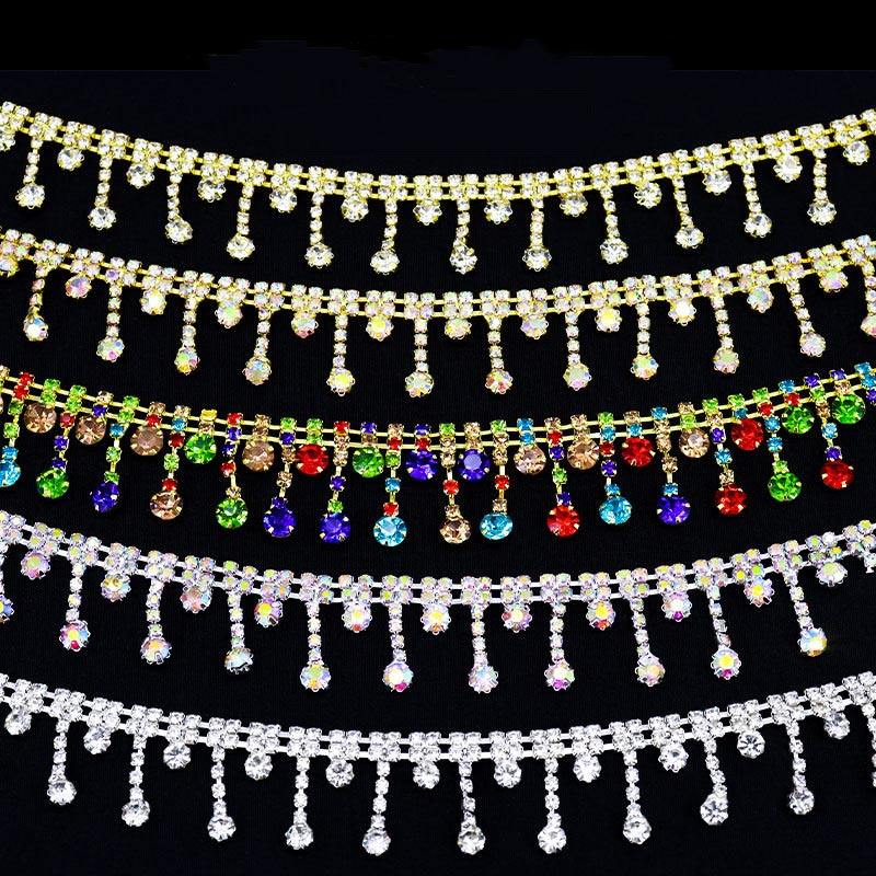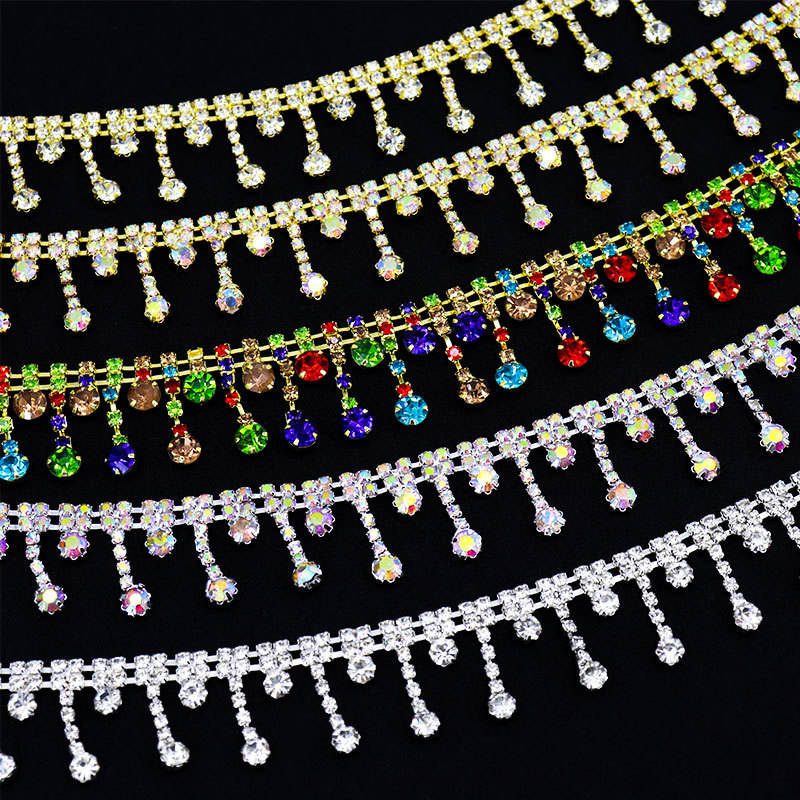 CZ strass di cristallo con strass in vetro con catena di nappe frangia accessori per vestiti borsa Costume scarpe con artiglio Set di quadri di diamanti