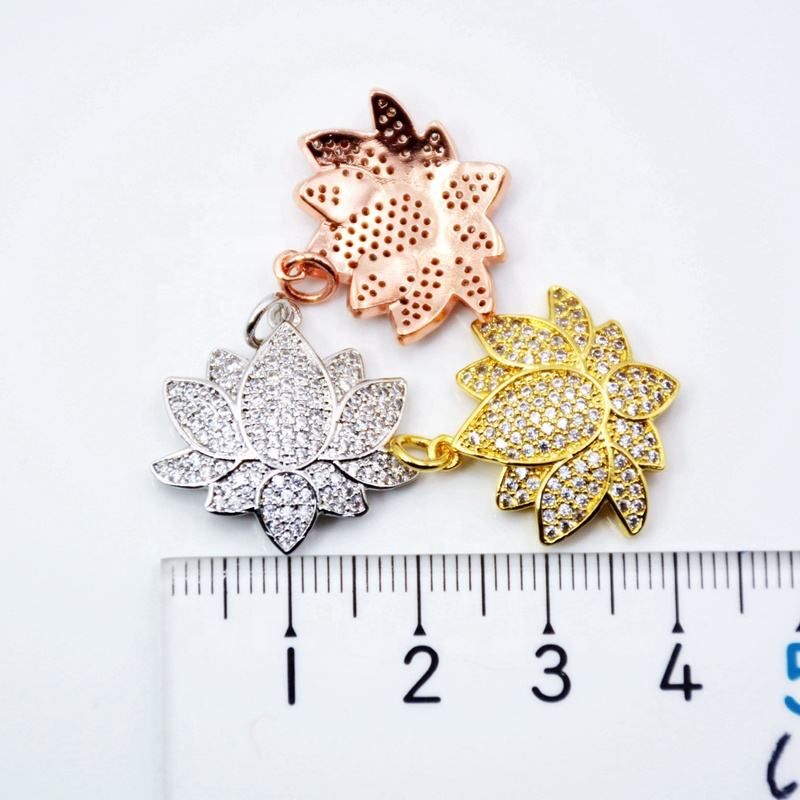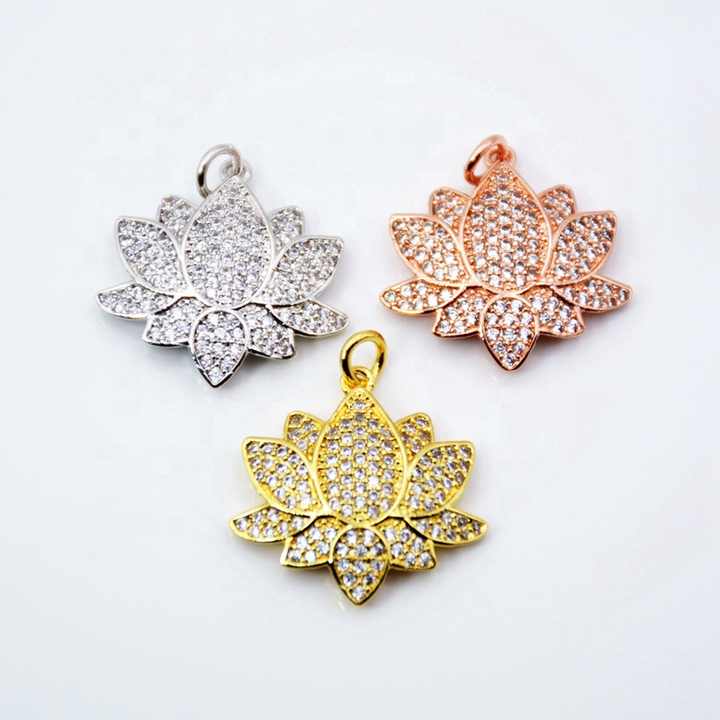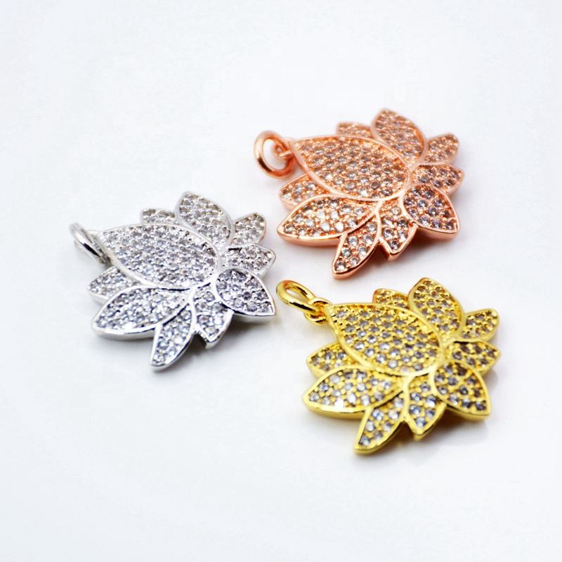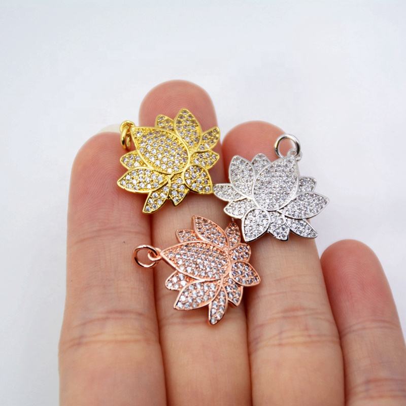 CZ Micro Pave Lotus Charm Pendant for Necklace Bracelet Cubic Zirconia Lotus Flower Yoga Charm/Pendant