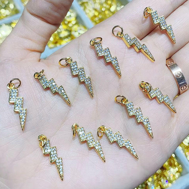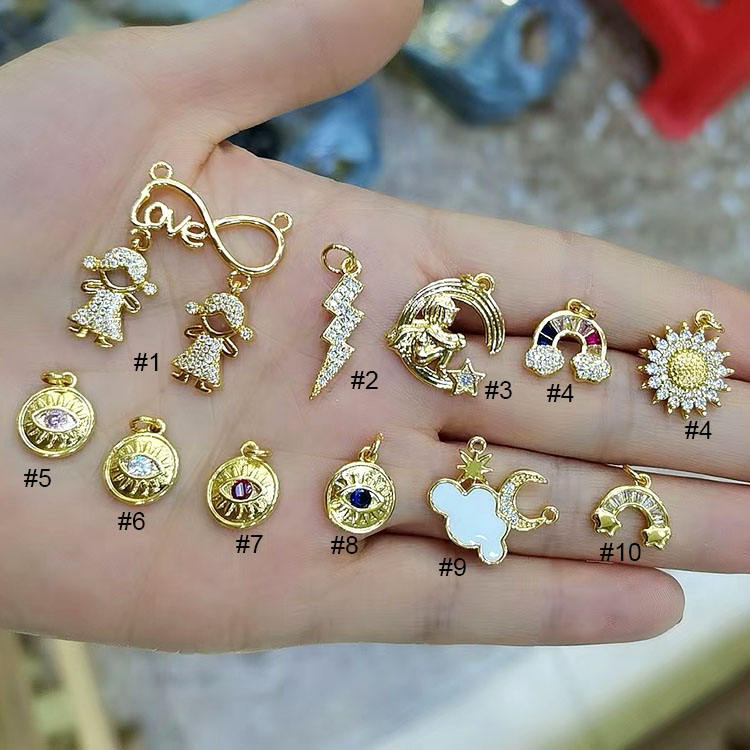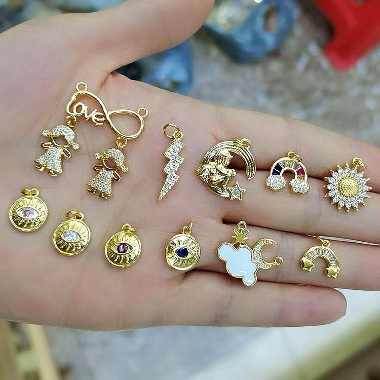 Ciondoli CZ8310 Delicati Mini in Oro 18k con Micro Pavé di Zirconi, Occhio Turco Arcobaleno, Sole, Nuvola con Stella, Luna Crescente, Fiore e Margherita
