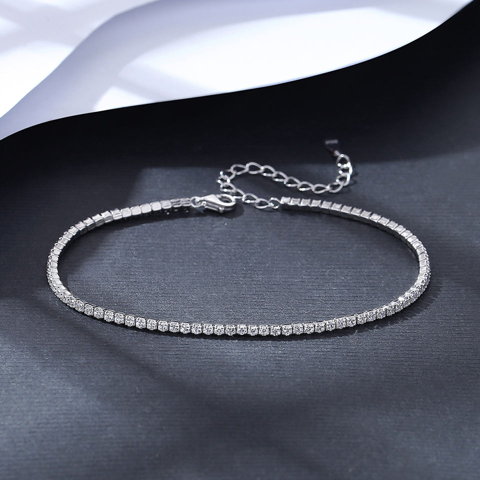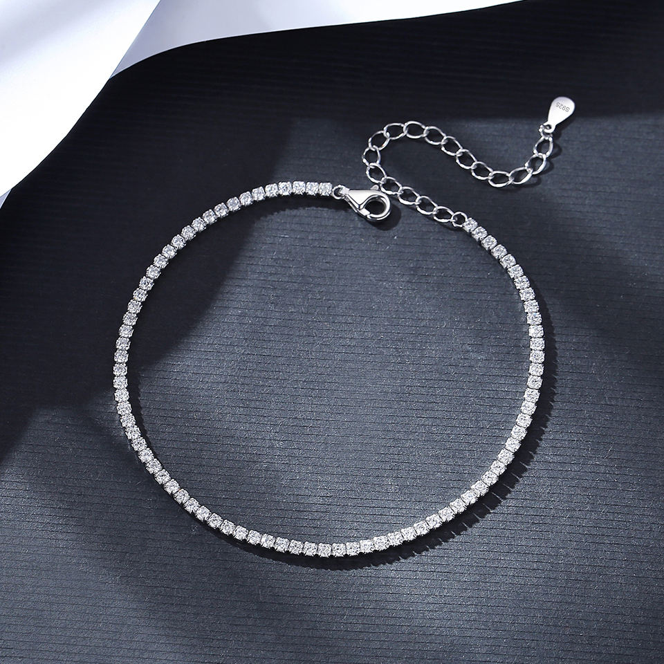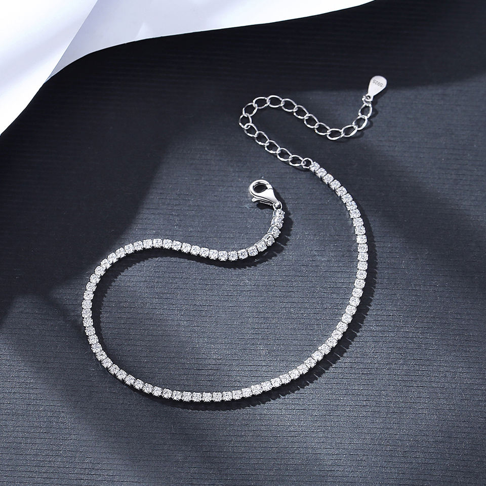 Braccialetto a catena in rodio da donna con ciondolo e zircone da 2mm 925 coreano in argento Sterling moda ragazza 925