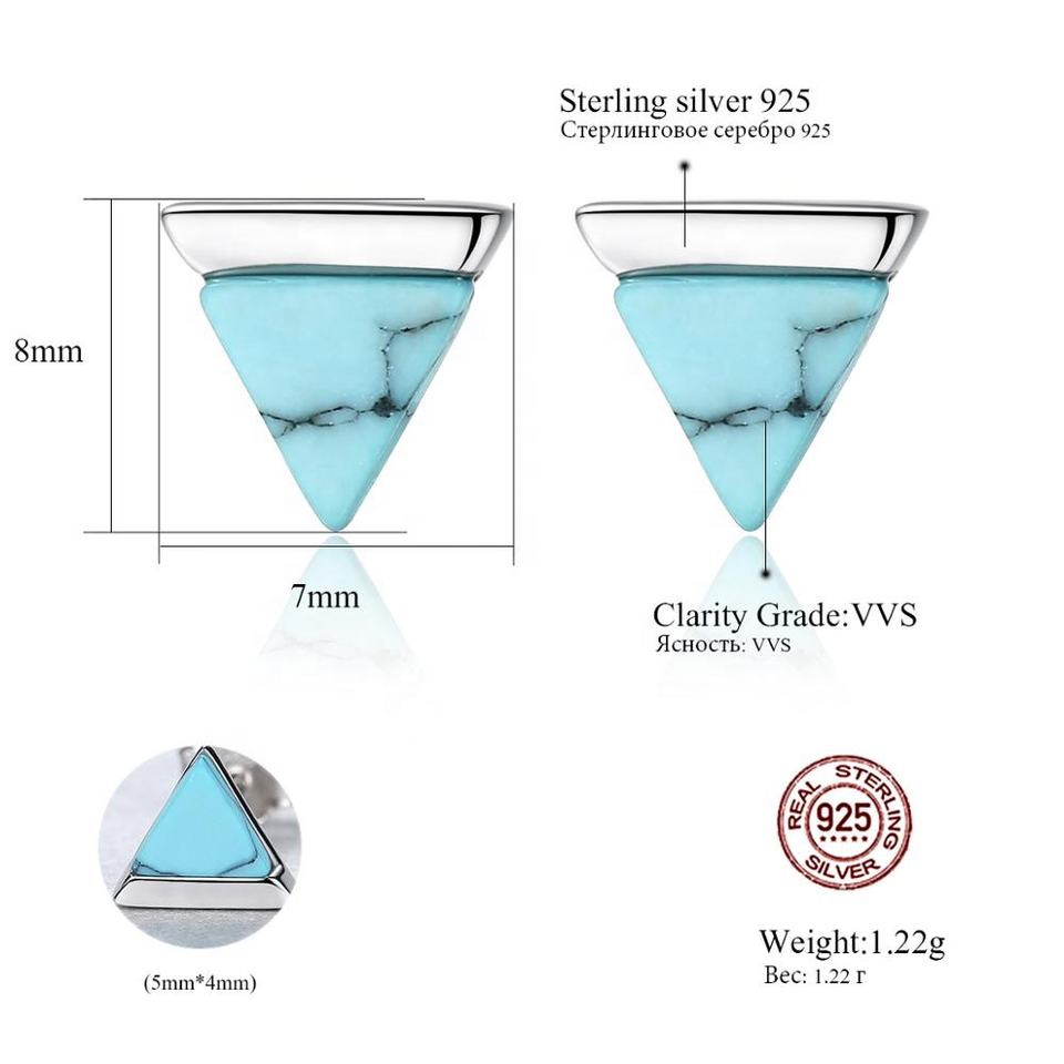 CZCITY Orecchini a Perno in Argento Sterling 925, Design Triangolare alla Moda, Vintage Minimalista con Turchese per Donne