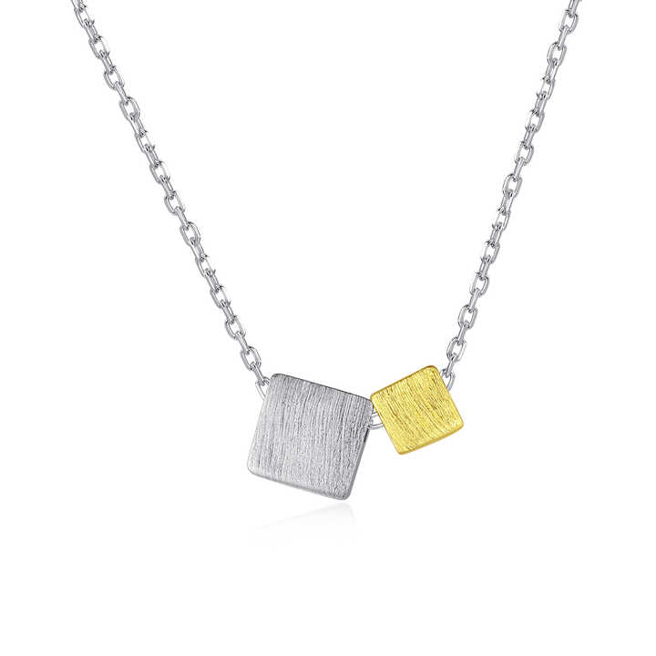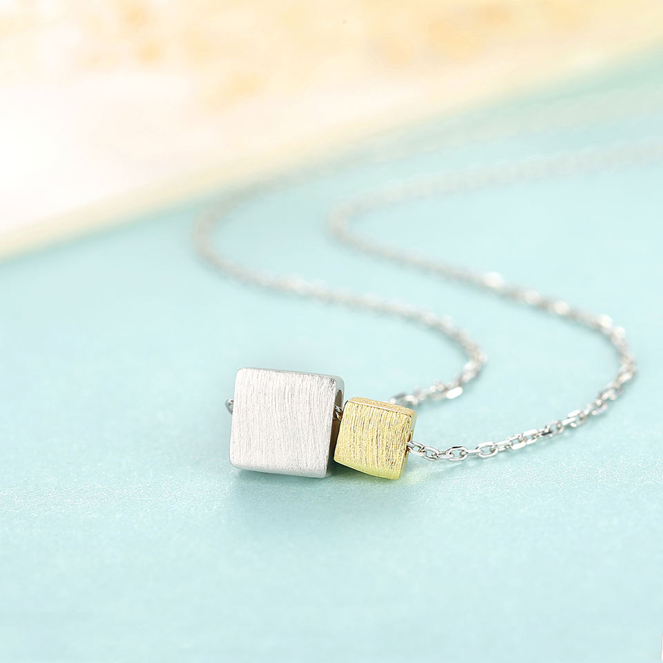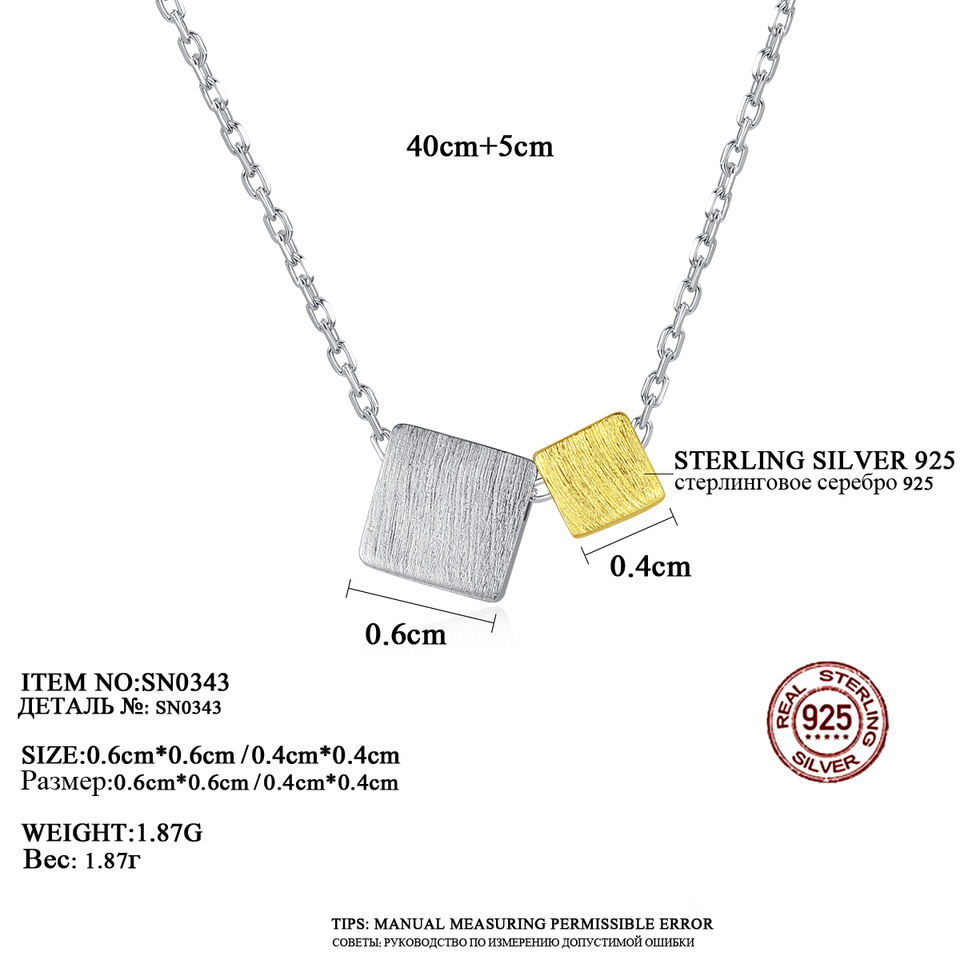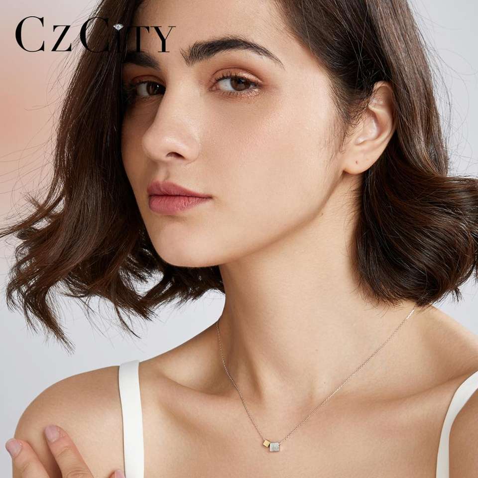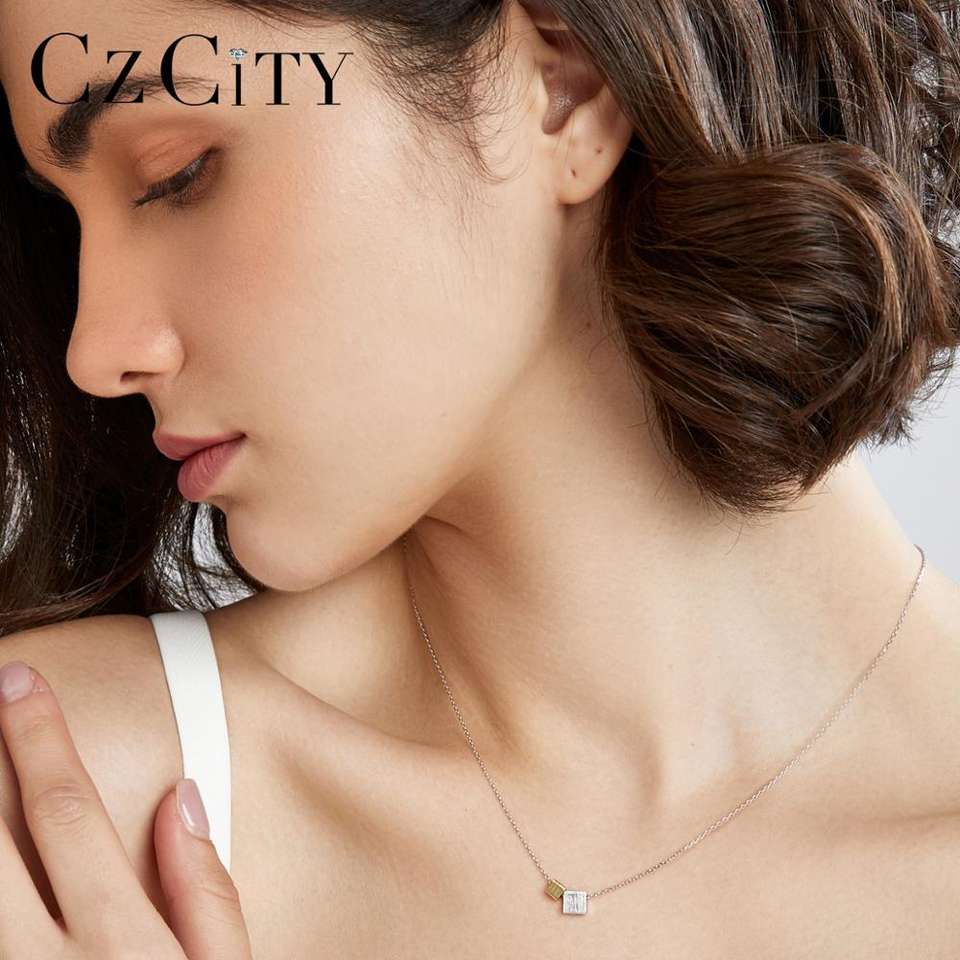 CZCITY due colori quadrati geometrici minimalisti gioielli in argento Sterling 925 collane doppie placcate in oro per bambina