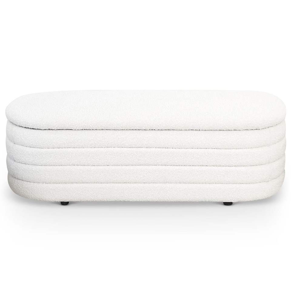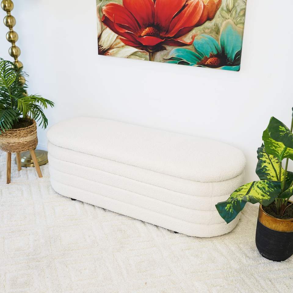 Panca Bianca in Bouclé con Contenitore, Elegante Arredo per Soggiorno
