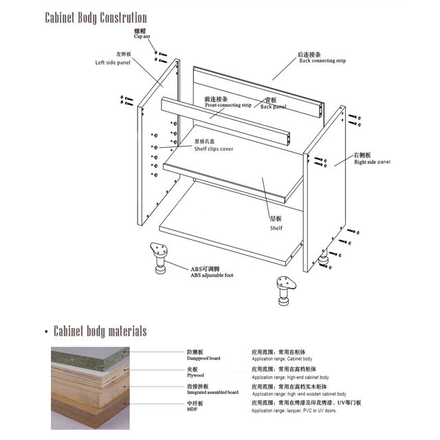 accessorio:Backsplash, Cestino del cassetto, Scorrevole del cassetto, Cerniera, Sedia di piede posteriore, Come richiesto dal cliente