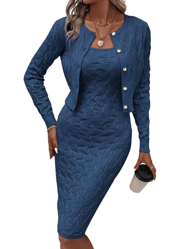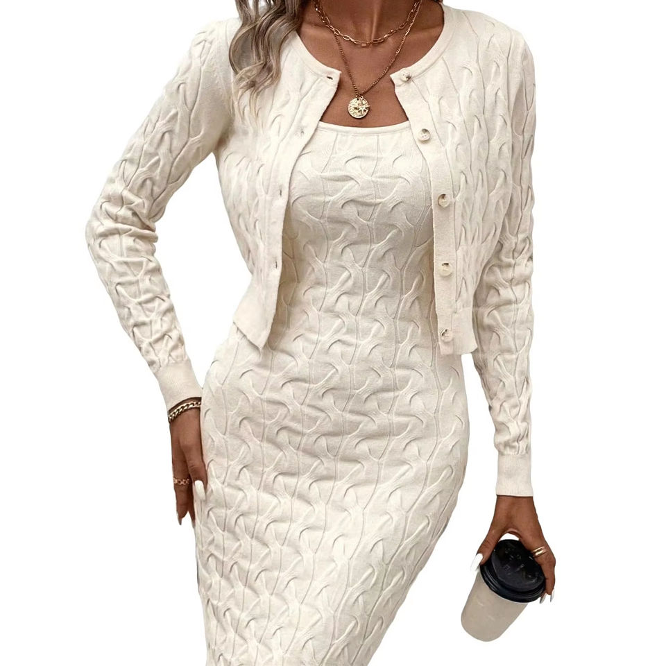 Set di abiti con cavo in maglia tinta unita e Cardigan frontale con bottoni