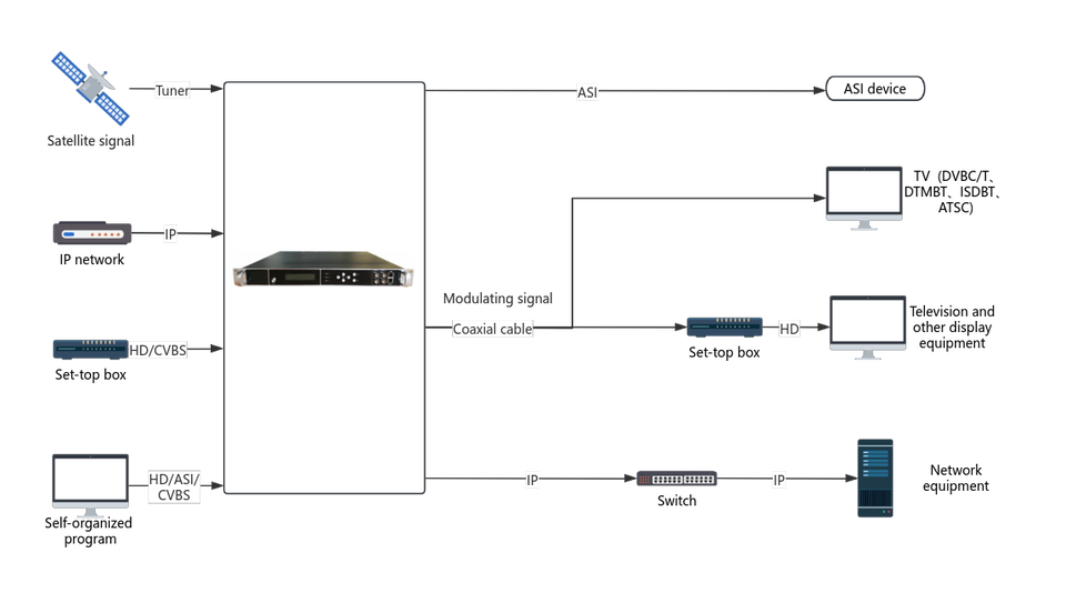 Head-End Digitale per Trasmissione TV Via Cavo da Modulatore a Tuner DVB-S2 DVB-C DVB-T ATSC DTMB-T ISDB-T 4/8/12/16/20/24