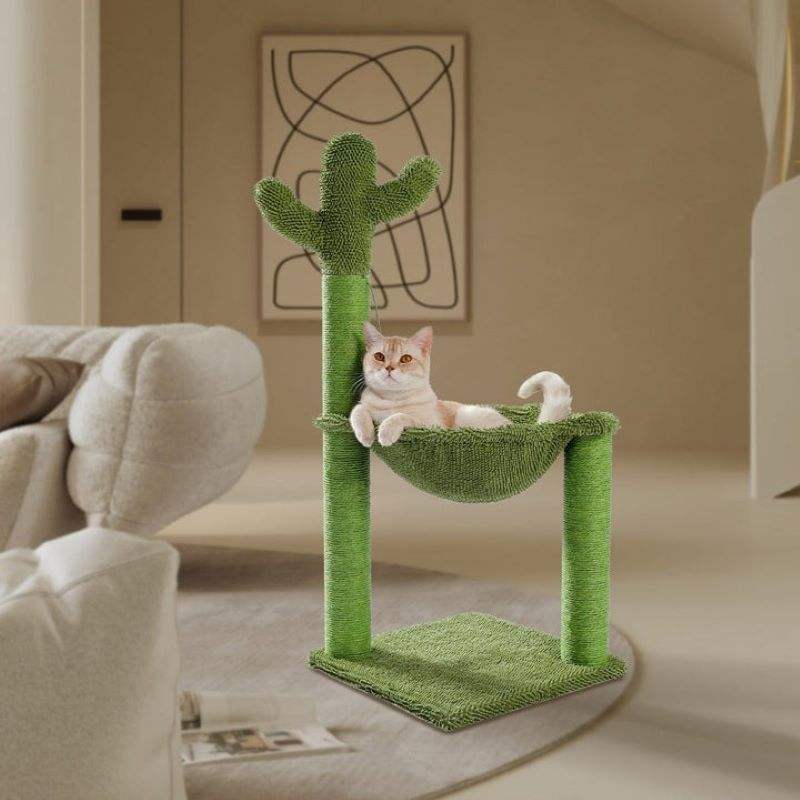 Tiragraffi per Gatti da Interno a Forma di Cactus con Amaca, Arredamento per Gatti