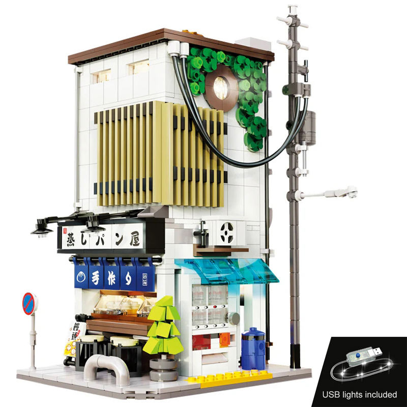 Cada C66006W Vista Cittadina 1108 Pezzi Casa di Panini al Vapore Giapponesi MOC Kit di Mattoncini da Costruzione con Illuminazione