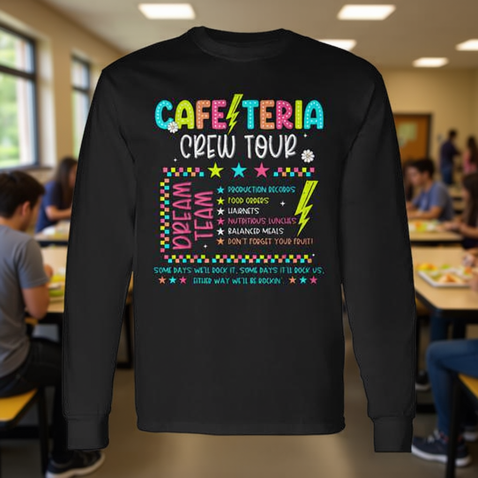 T-shirt a maniche lunghe Cafeteria Crew Tour con design della squadra dello spuntino scolastico