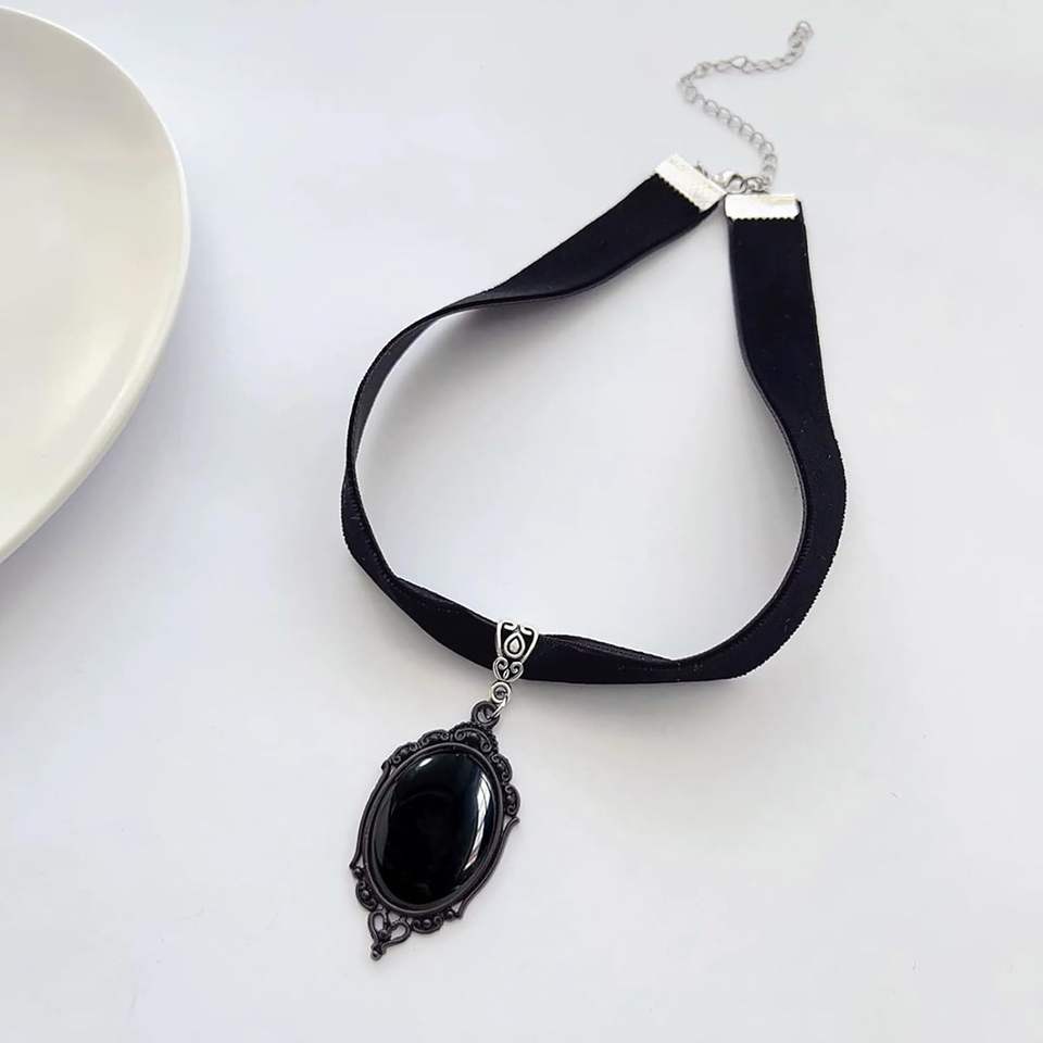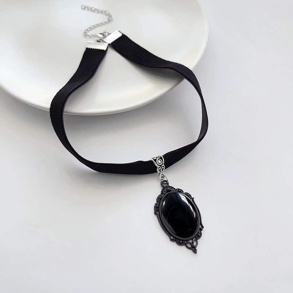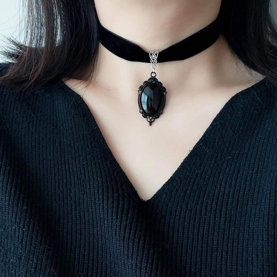 Caiguoer Gothic Halloween Necklace for Women Black Choker Crystal Pendant Trendy Jewellery for Vampire Themed Parties or Gifts