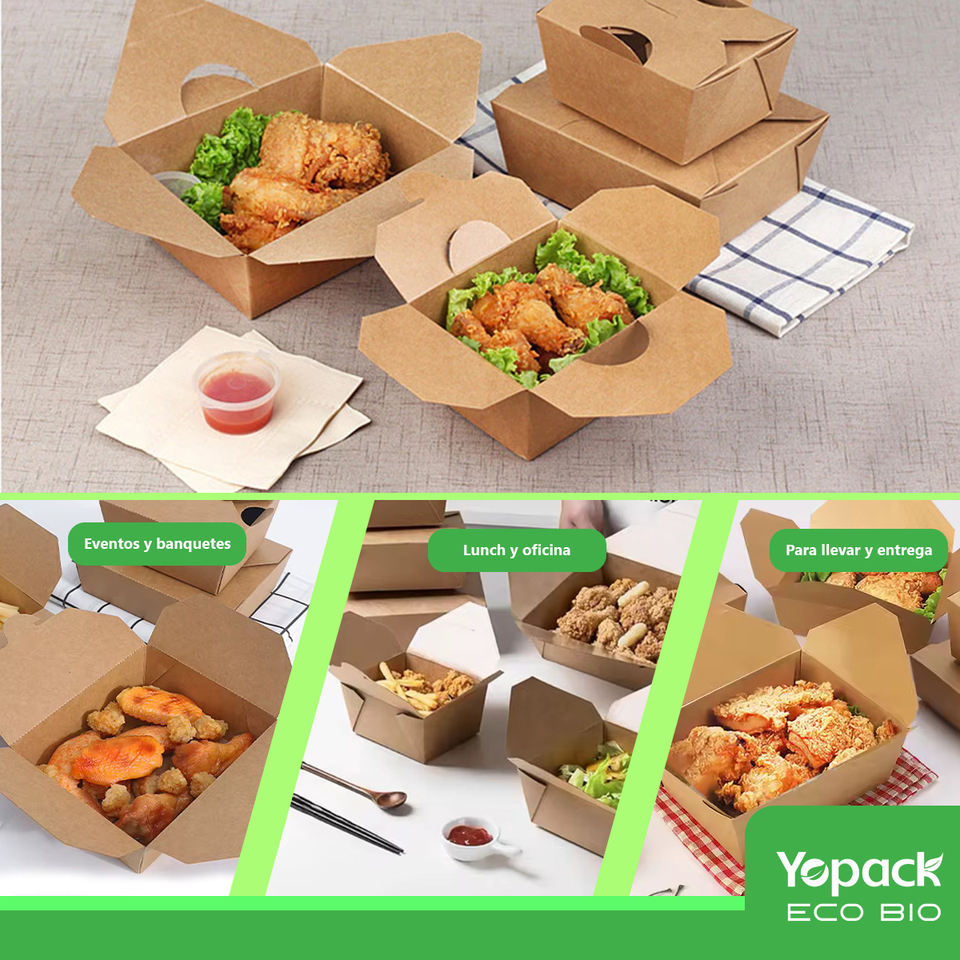 Caja para pollo frito #2, contenedor ecologico para alimentos fritos, paquete de 200 unidades, Envios desde Mexico
