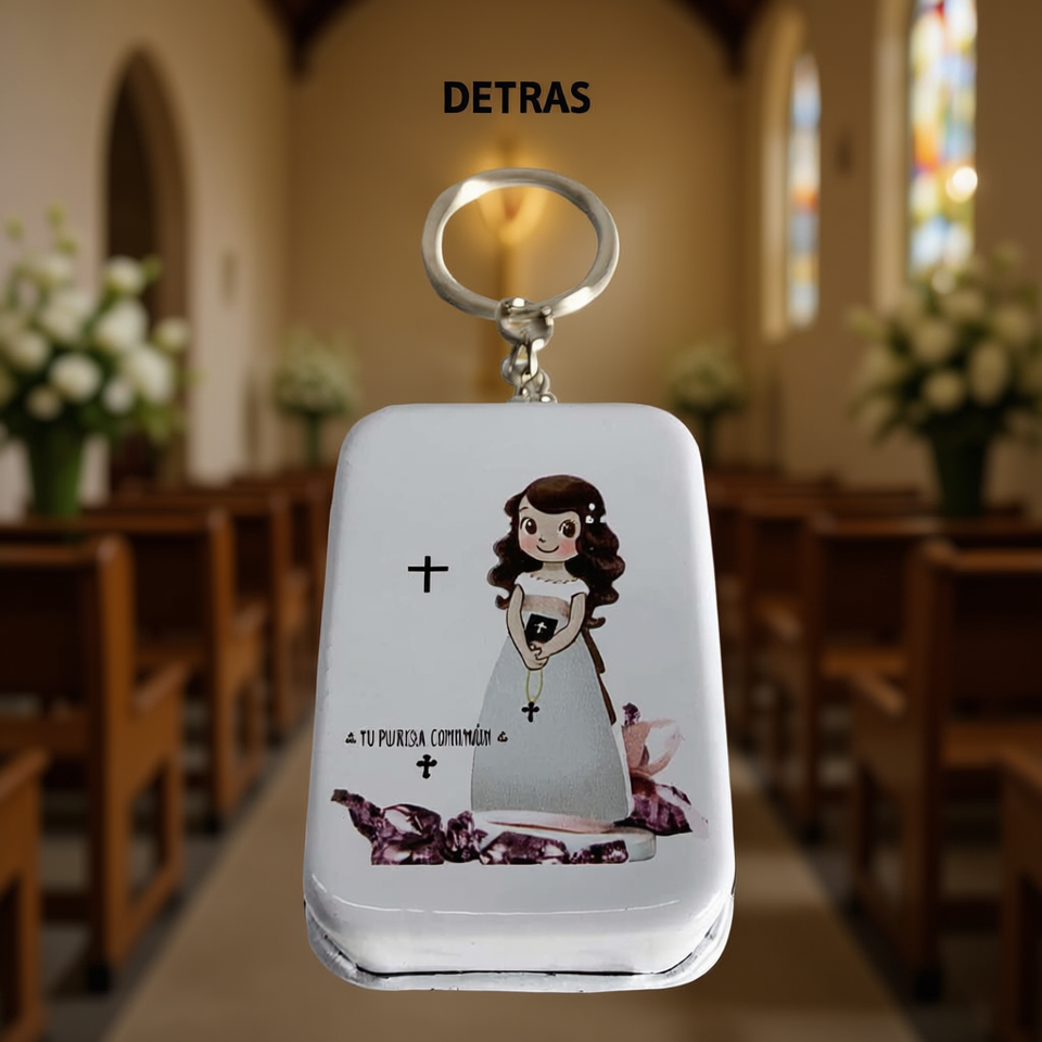 Portachiavi Portamonete in Metallo 6.5x4cm, Leggero, Stampa Digitale, Decorazione Religiosa per Comunione, Elegante per Eventi e Feste