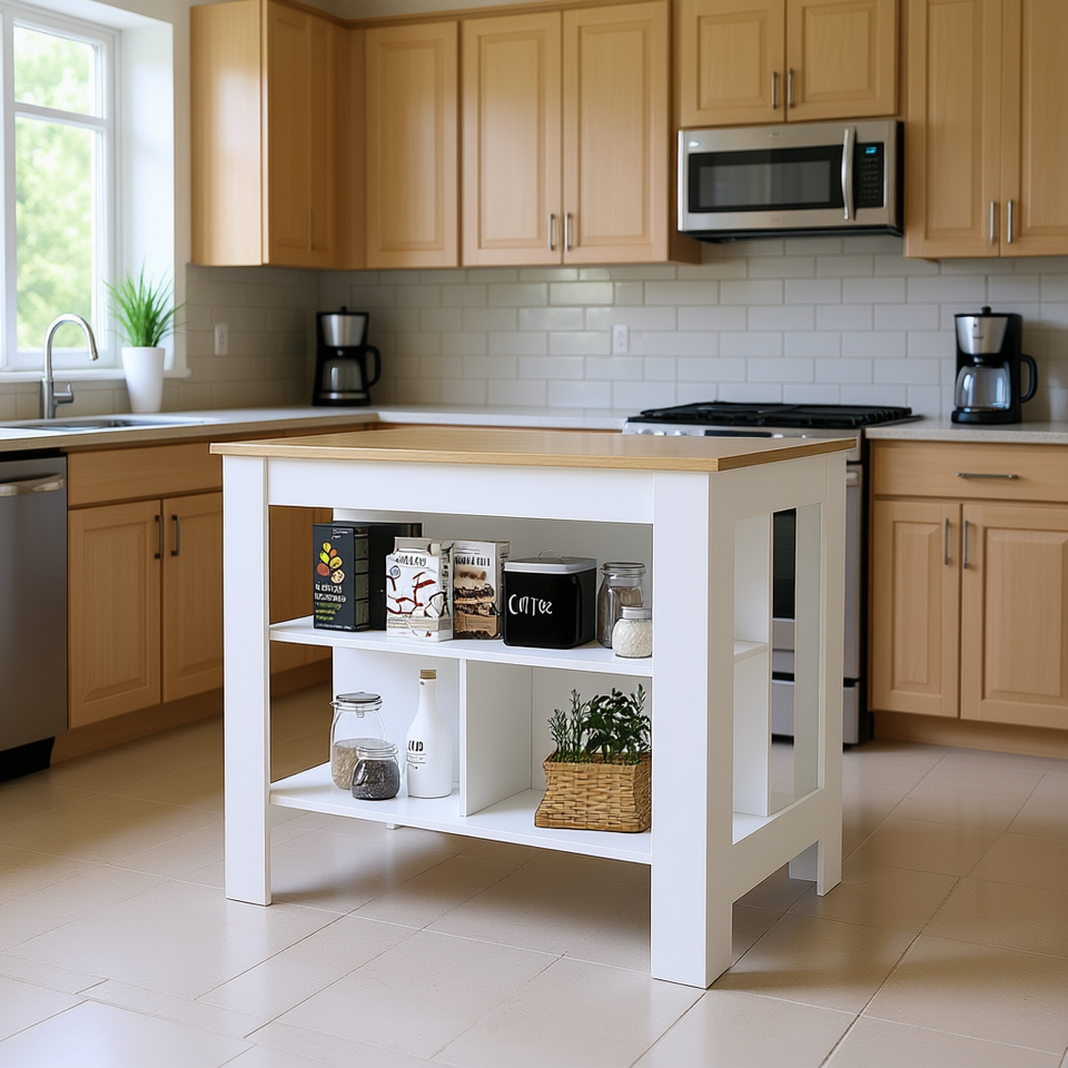 Isola Cucina Cala con 3 Ripiani in Rovere Chiaro Bianco, Unità di Stoccaggio Moderna in Legno per Cucina