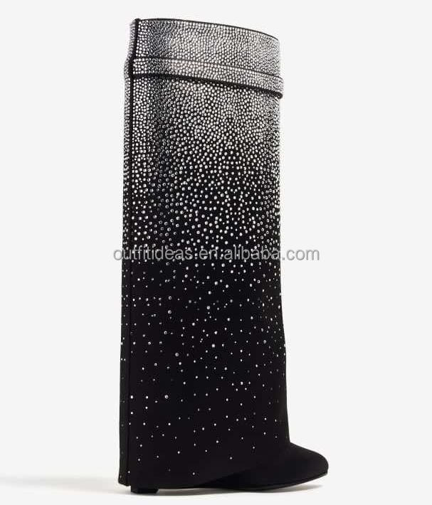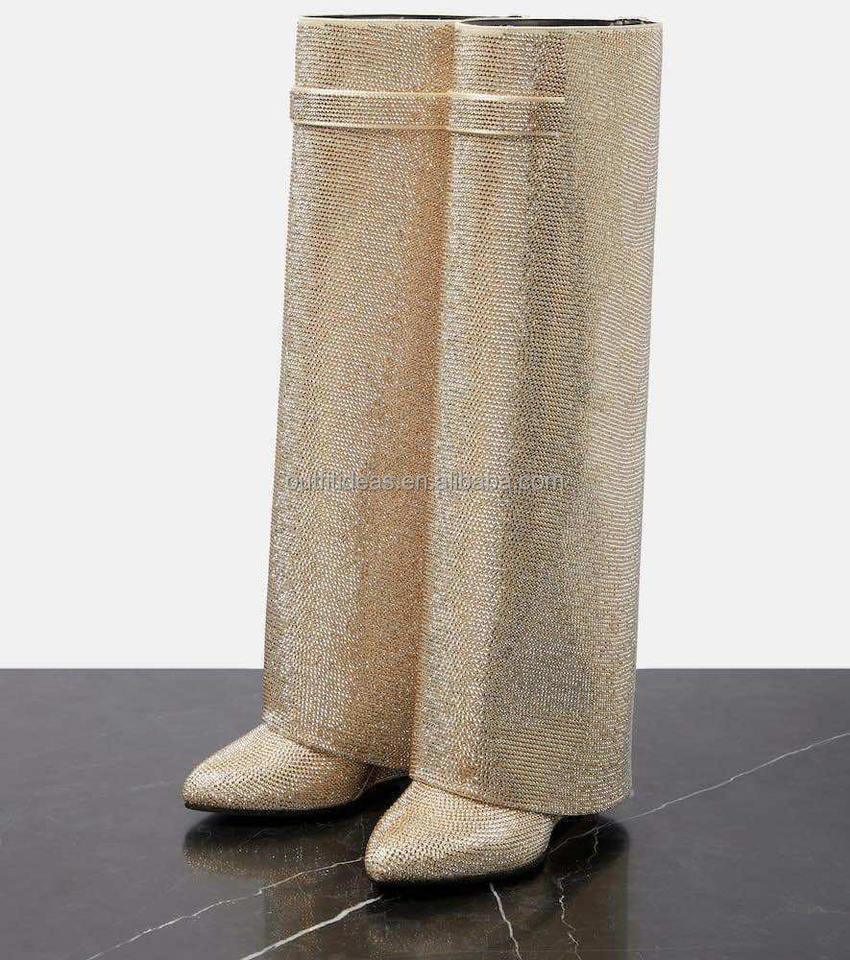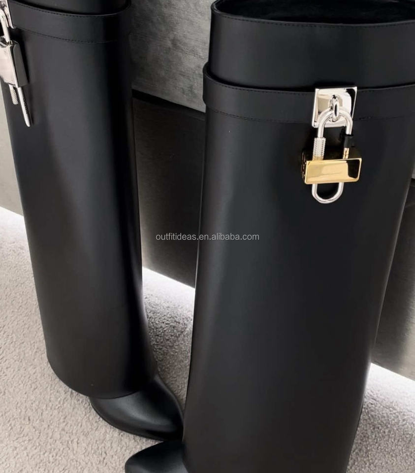 Calfskin Crystal Original Padlock Booties Girls Heels Luxury Knee-High Wide Fit Leather Women Lock Boots in Satin with Strass