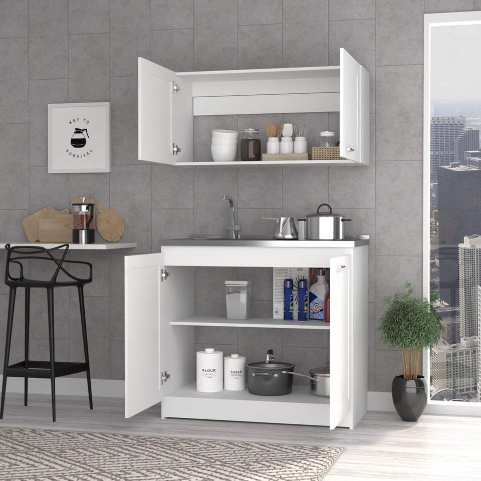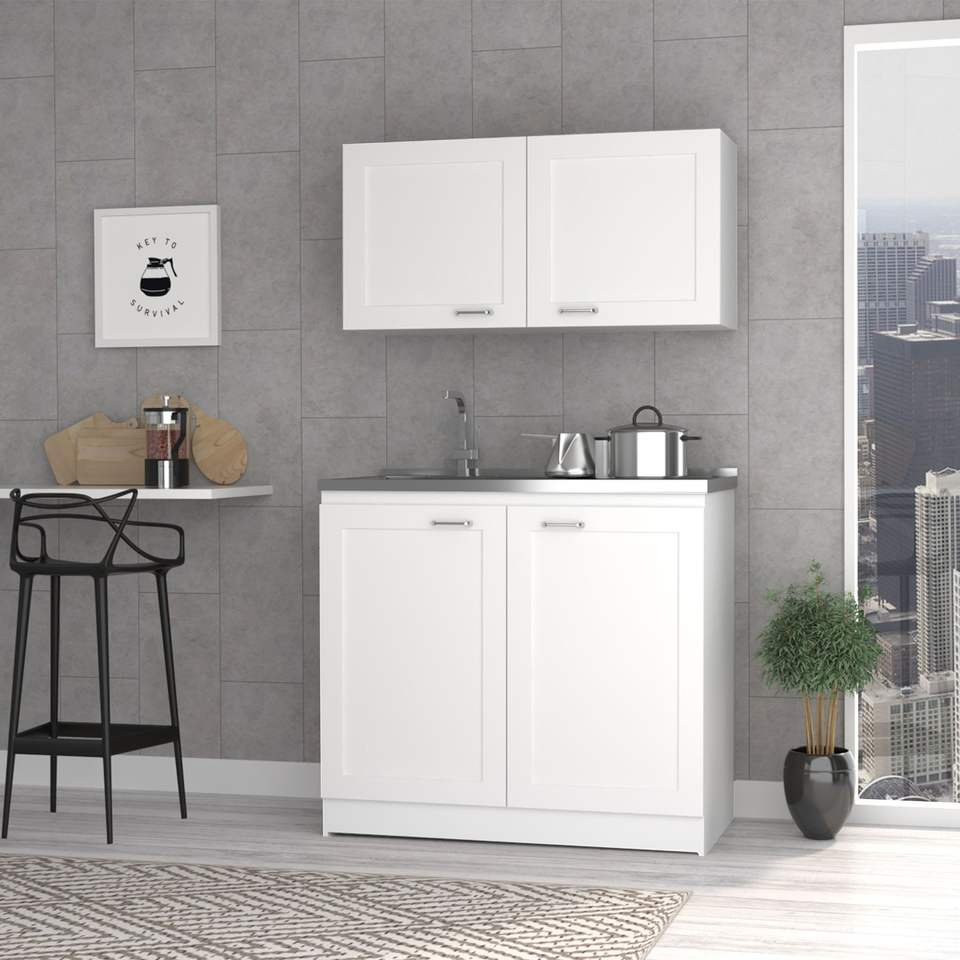 Set di mobili da cucina bianchi rettangolari Cambridge in 2 pezzi