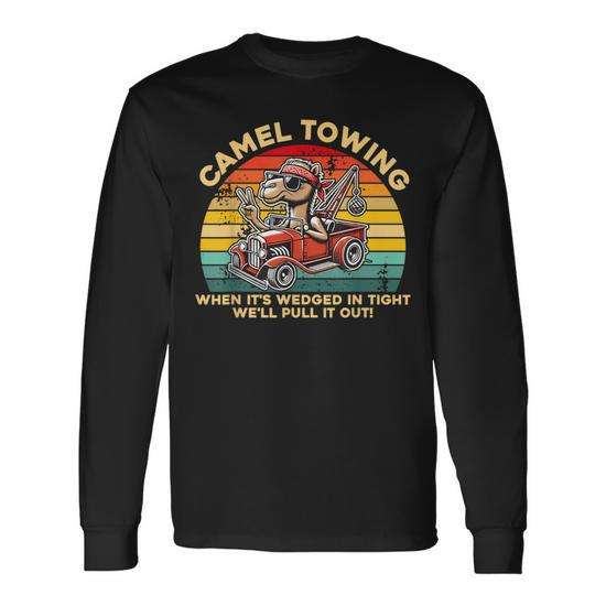 Maglietta a maniche lunghe Camel Towing con design vintage del camion da traino Camel, maglietta con grafica divertente