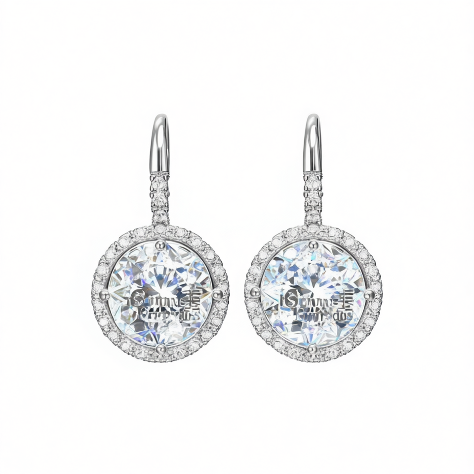 Orecchini di Diamanti Camelot in Oro Bianco, Taglio Brillante Rotondo, Colore D, Naturali Certificati GIA, Gioielli Classici da Sposa per Donna