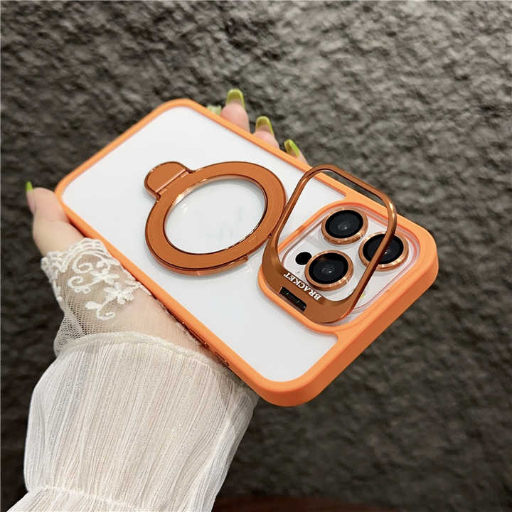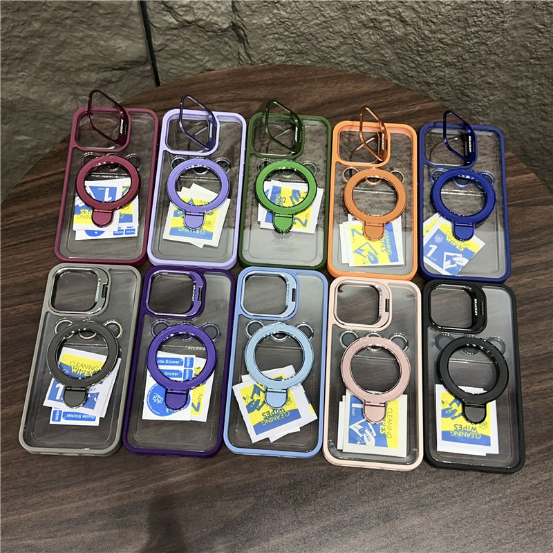 Custodia Protettiva per Fotocamera con Supporto in Metallo per iPhone 16 15 14 13 12 11 Pro Max, Cover Trasparente Antiurto in Acrilico