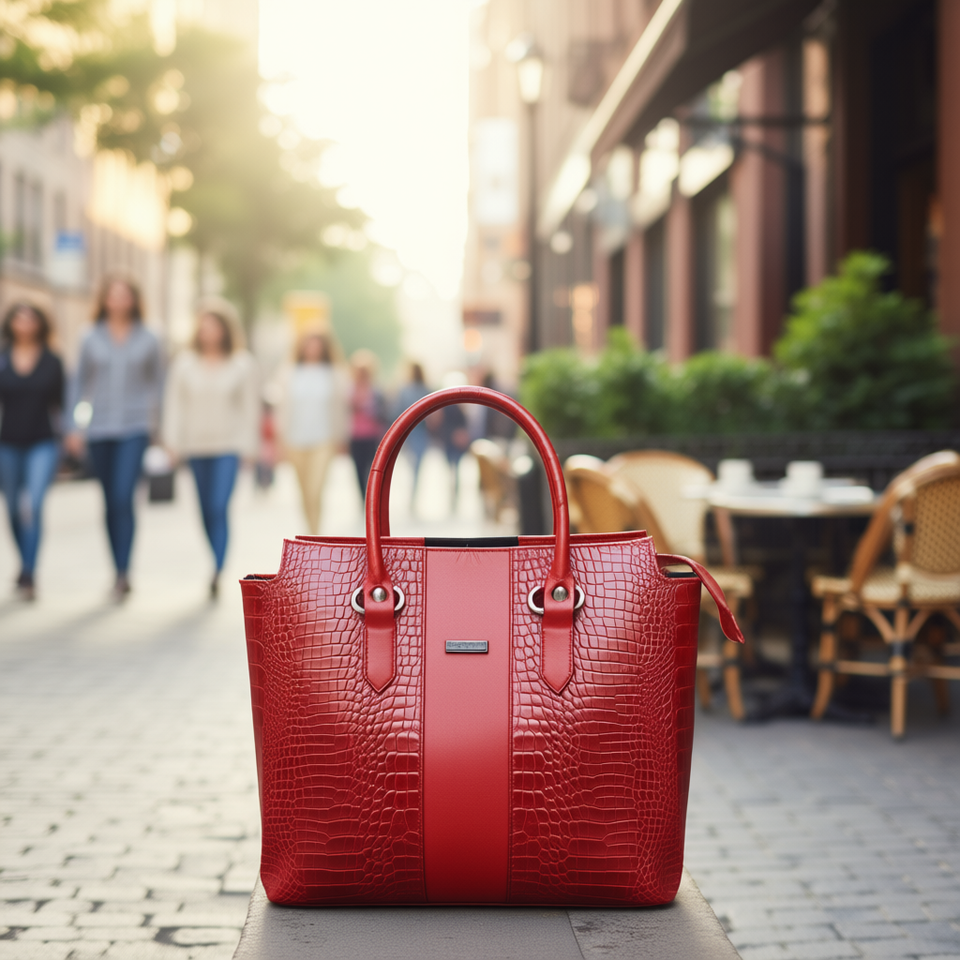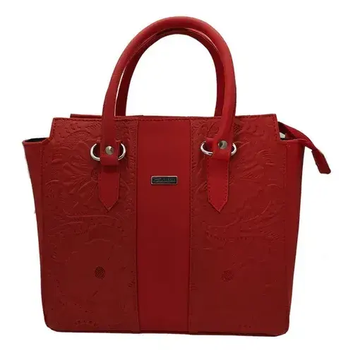 Borsa Tote Camila Rossa in Pelle Bovina Lavorata, Chiusura Aperta, Motivo Coccodrillo, Vera Pelle, Design con Manici, Borsa Casual da Donna