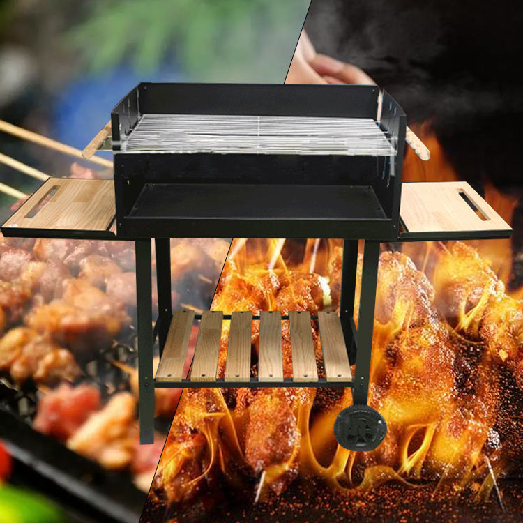 Camping Garden Charcoal Barbecue Grill With Table Black Outdoor Smoker Charcoal BBQ Wood Stove