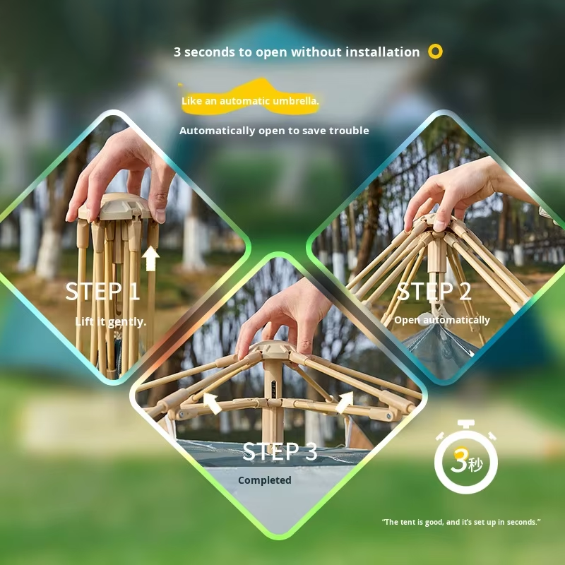 Tenda da Campeggio Monostrato con Pali in Vetro, Quattro Stagioni, Portatile, Pieghevole, per Autunno e Inverno, Attrezzatura per Picnic, Spiaggia e Pernottamento