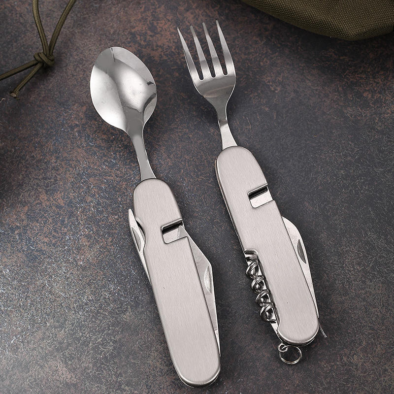 Utensili da campeggio set di posate staccabili Multi-strumento kit cucchiaio forchetta coltello apribottiglie pieghevole posate portatili per escursioni da viaggio