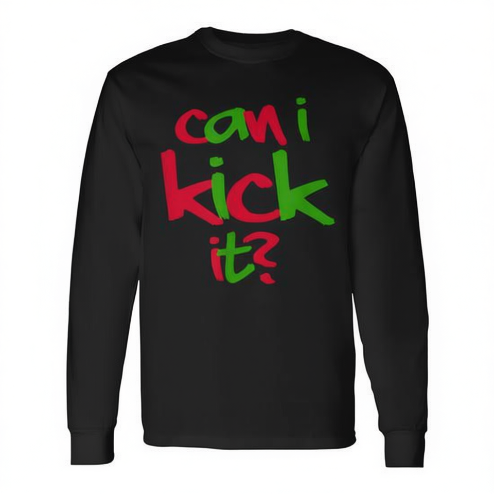 Can I Kick IT Urban Graffiti T-shirt a maniche lunghe in stile hip hop originale e divertente per uso promozionale
