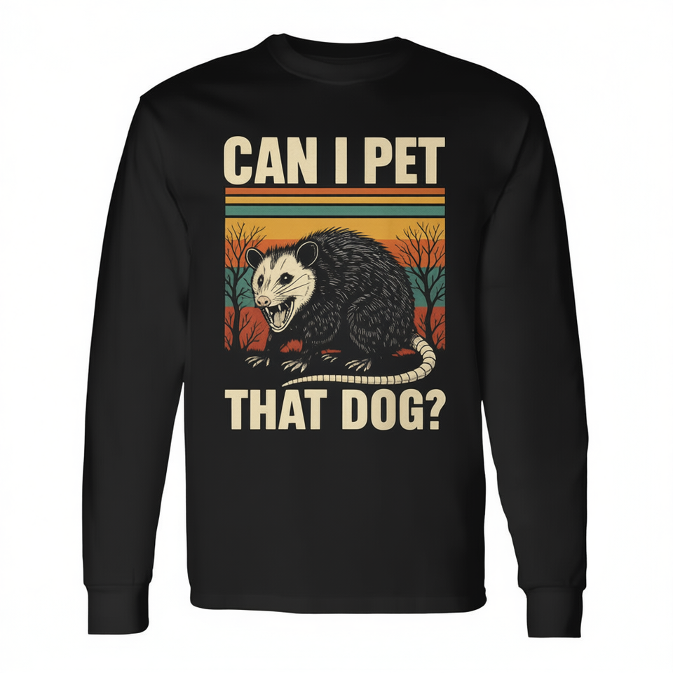 Maglietta a maniche lunghe con stampa 'Can I Pet That Dog Opossum'