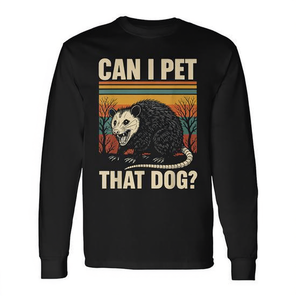 Maglietta a maniche lunghe con stampa 'Can I Pet That Dog Opossum'