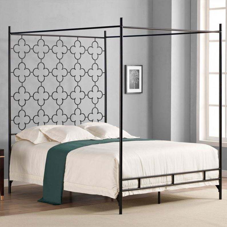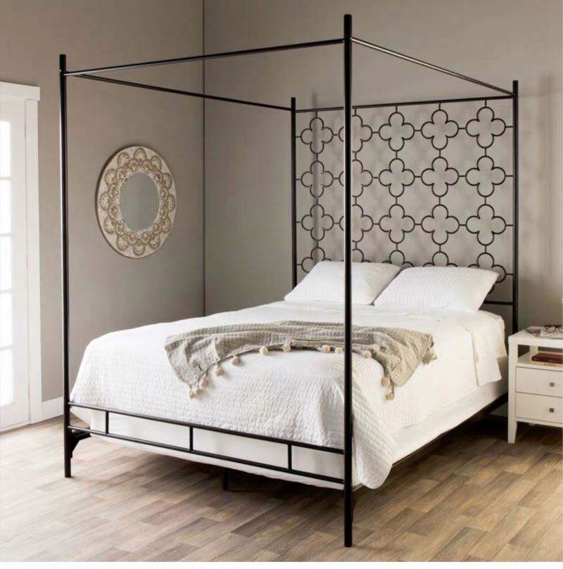 Letto in Ferro con Telaio Alto Singolo o Matrimoniale, Supporto per Zanzariera Bianco e Nero