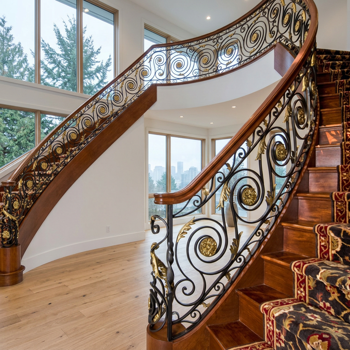 Ringhiere in Ferro Battuto Decorative di Alta Gamma per Interni, Ringhiere Curve in Ferro per Scale, Stile Canadese