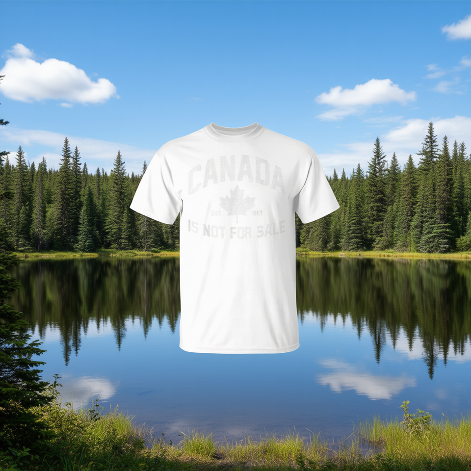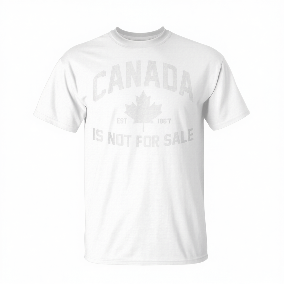T-Shirt Unisex 'Canada Is Not For Sale' per Adulti, Manica Corta, Collo Rotondo, Abbigliamento Promozionale Bianco con Stampa Serigrafica