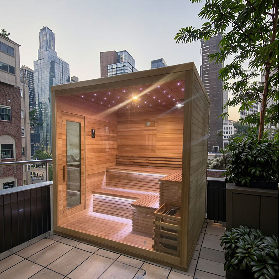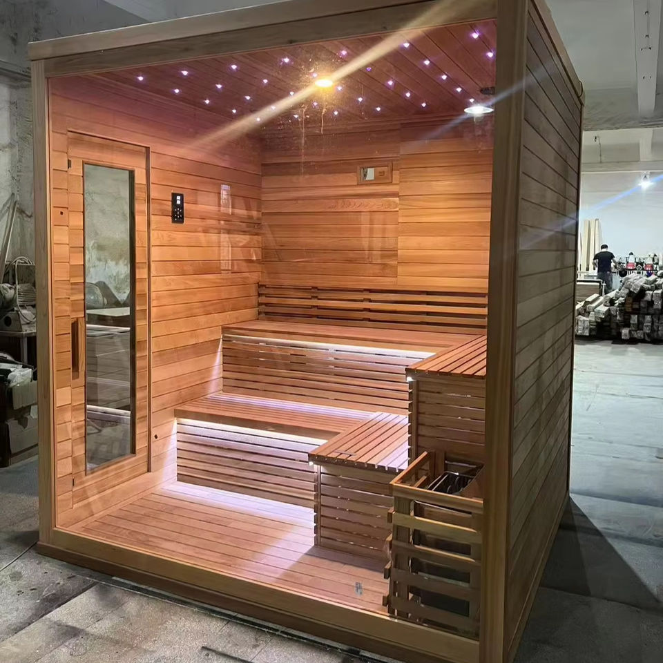Canadese importato 4 persone cedro rosso caldo palestra Sauna con stufa elettrica 9KW vapore secco cicuta legno massiccio di pino senza portico