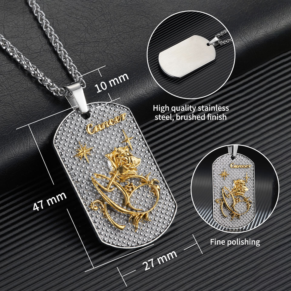 Collana con Ciondolo Segno Zodiacale Cancro, 12 Segni Zodiacali, Oroscopo, Placcata in Oro 18K, Catena in Acciaio Inossidabile, Design Elegante