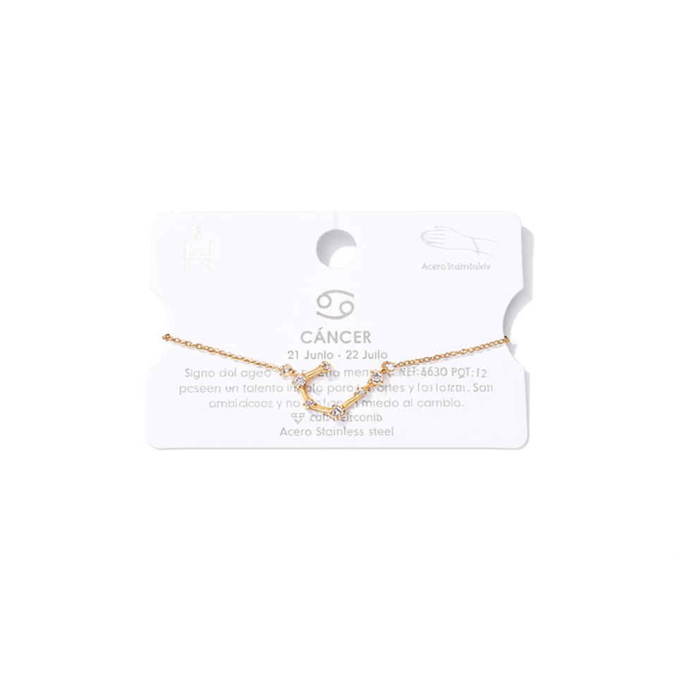 Bracciale in Acciaio Inossidabile con Diamanti Segno Zodiacale Cancro, Catena 12mm, Gioielli Astrologici