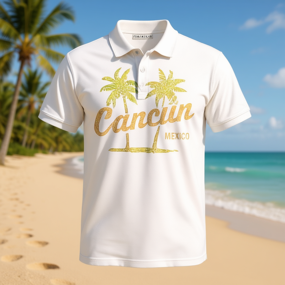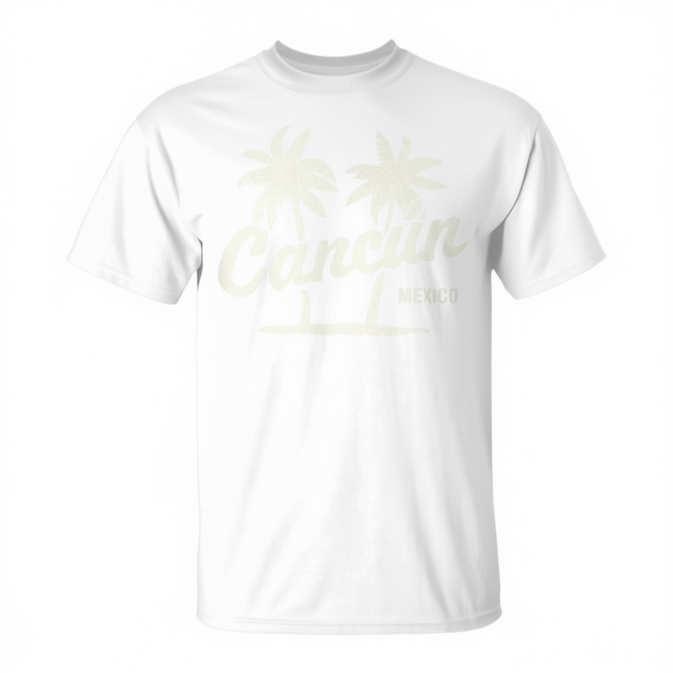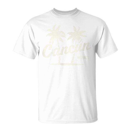 Cancun Mexico Palm Trees Graphic T-Shirt Vintage Style White Men's Shirt