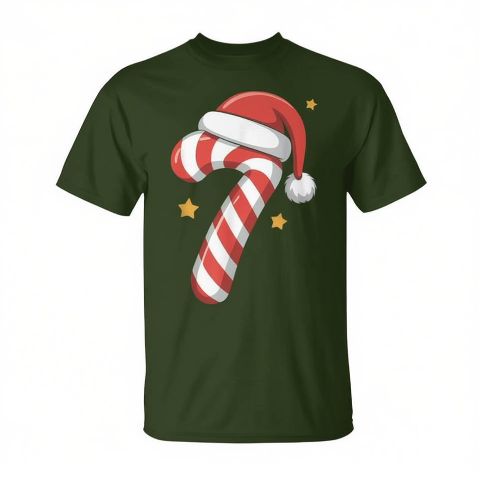 T-shirt natalizia Candy Cane 7 con cappello da Babbo Natale, design coordinato per le festività